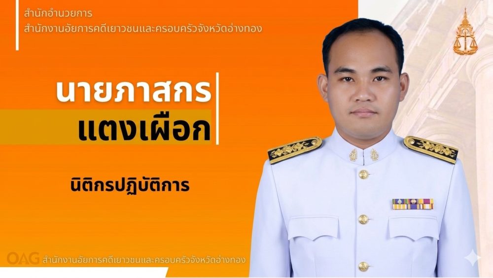 เมื่อวันที่ 4 พฤษภาคม 2568 นางสาวสายสุนีย์ กุลธนพานิช อัยการจังหวัดคดีเยาวชนและครอบครัวจังหวัดอ่างทอง พร้อมด้วยข้าราชการฝ่ายอัยการ ลงนามถวายพระพรชัยมงคลเนื่องในวันฉัตรมงคล (วันปฐมบรมราชาภิเษก พระบาทสมเด็จพระเจ้าอยู่หัว รัชกาลที่ 10) ณ สำนักงานอาคารริมน้ำ ถนนเทศบาล 1 ต.บางแก้ว อ.เมือง จ.อ่างทอง