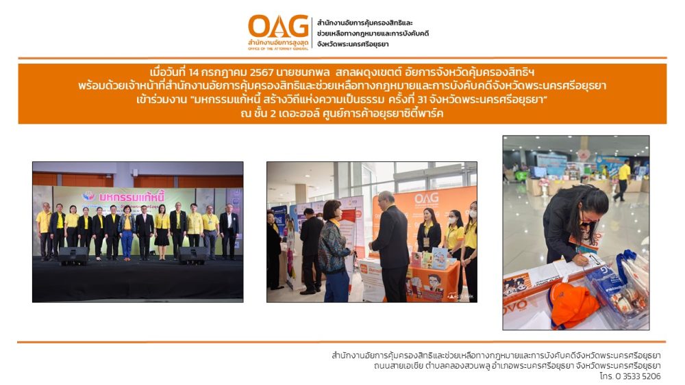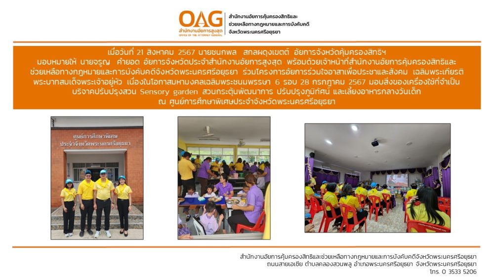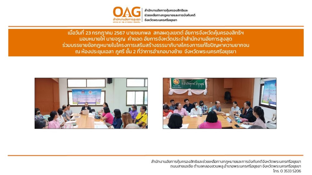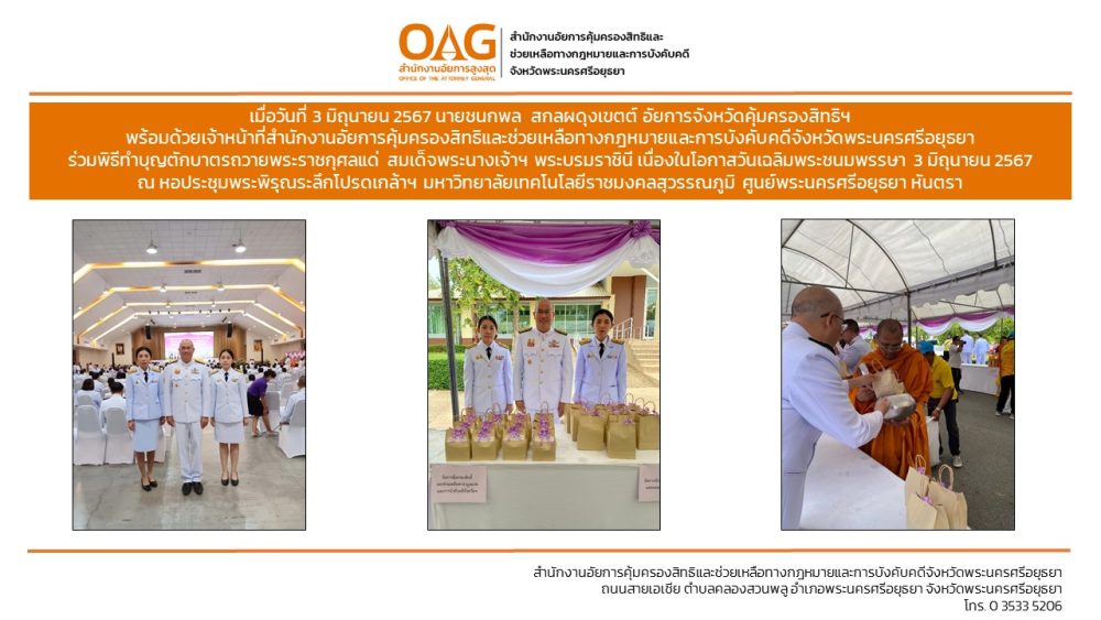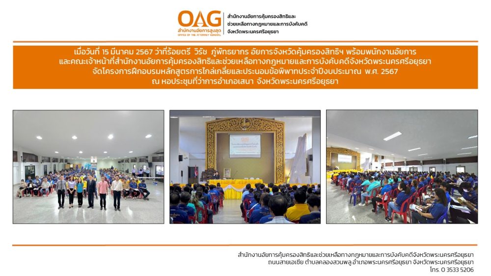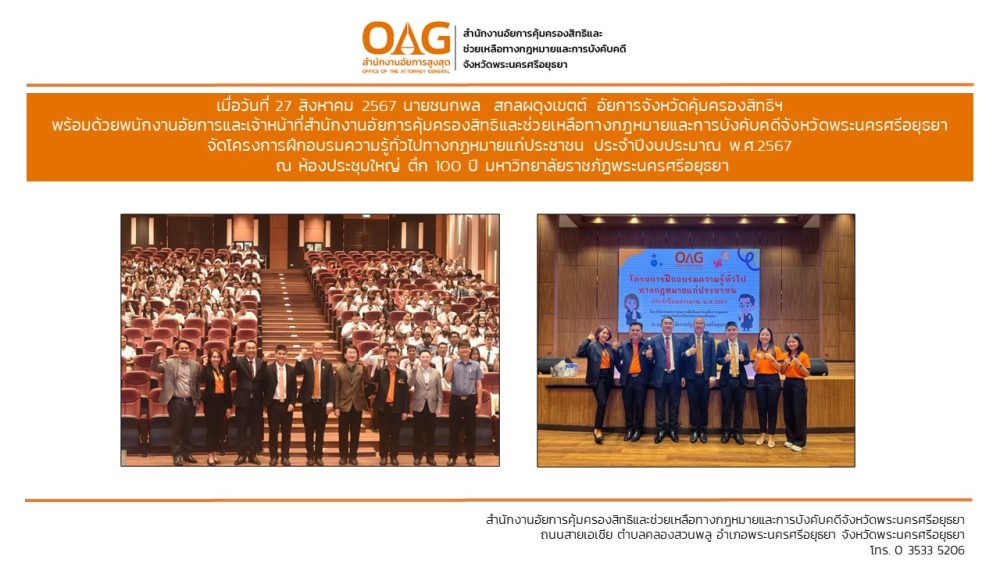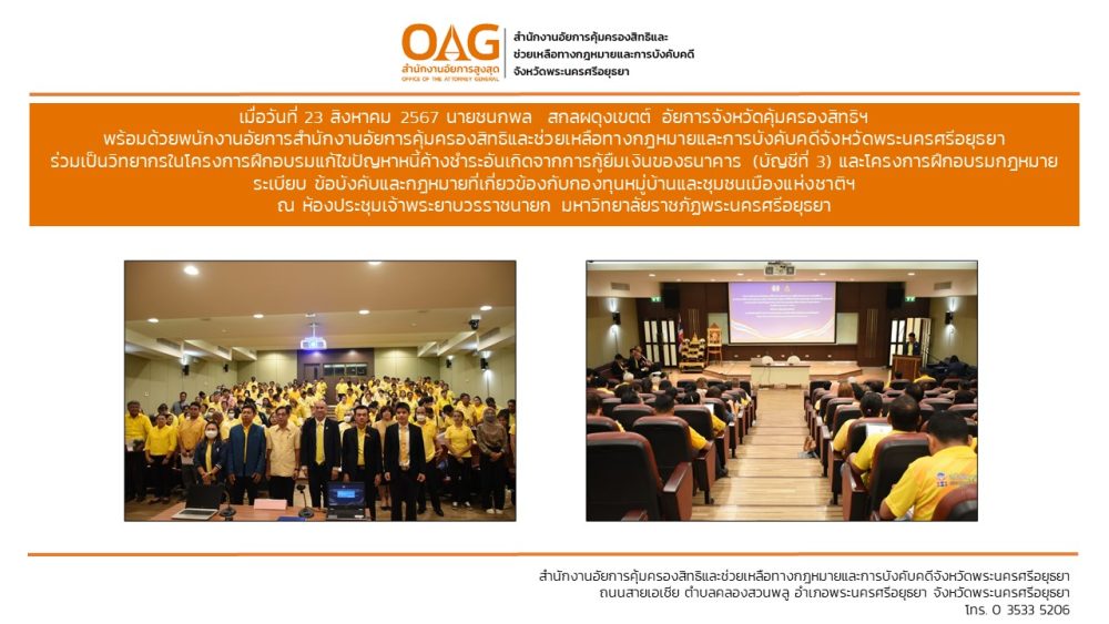 “อาสาสมัครอัยการช่วยได้” ของสำนักงานอัยการคุ้มครองสิทธิและช่วยเหลือทางกฎหมายและการบังคับคดีจังหวัดพระนครศรีอยุธยา
