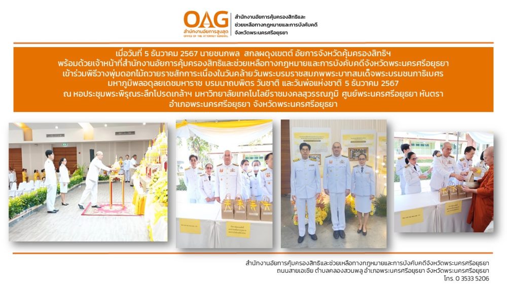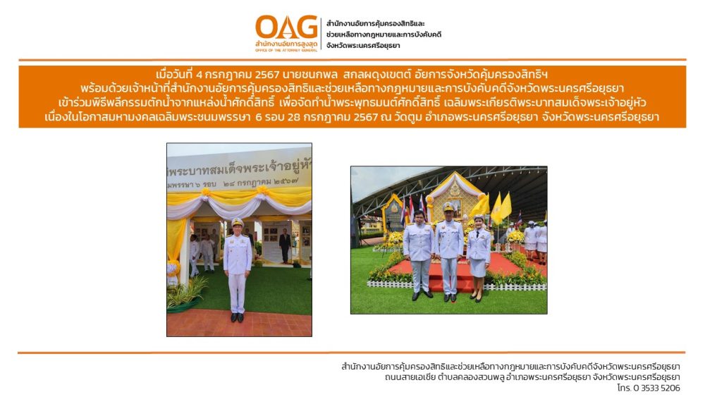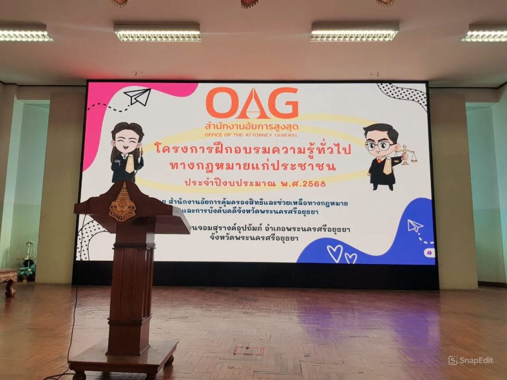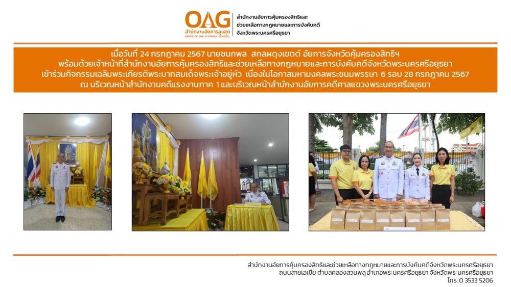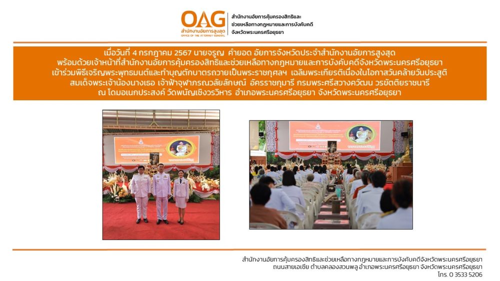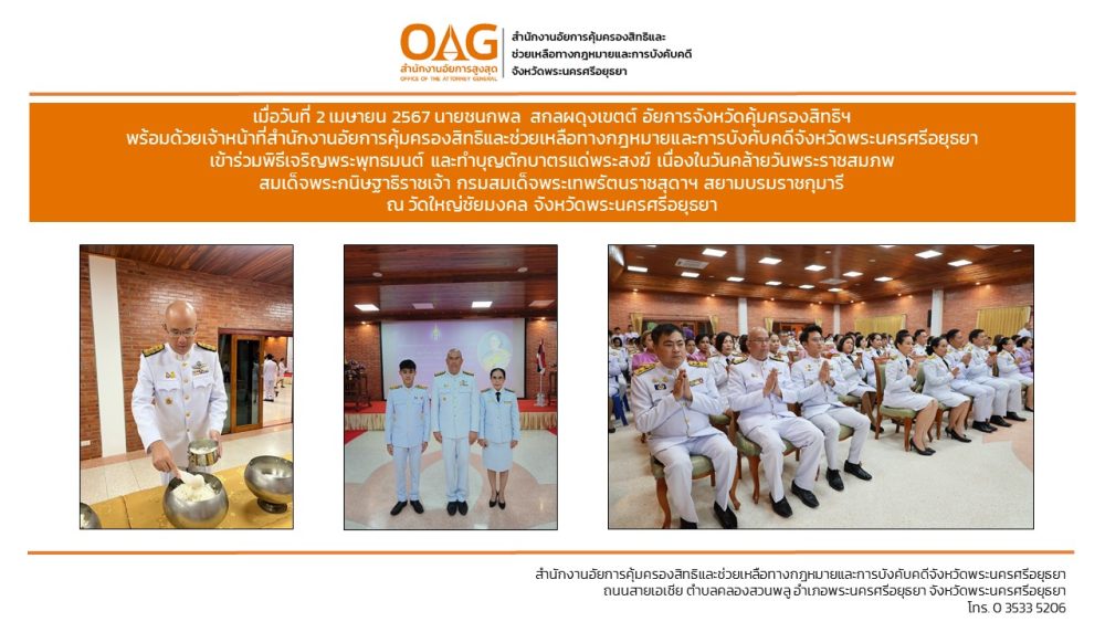 “อาสาสมัครอัยการช่วยได้” ของสำนักงานอัยการคุ้มครองสิทธิและช่วยเหลือทางกฎหมายและการบังคับคดีจังหวัดพระนครศรีอยุธยา