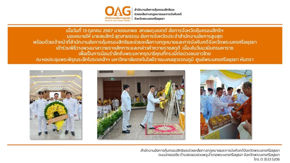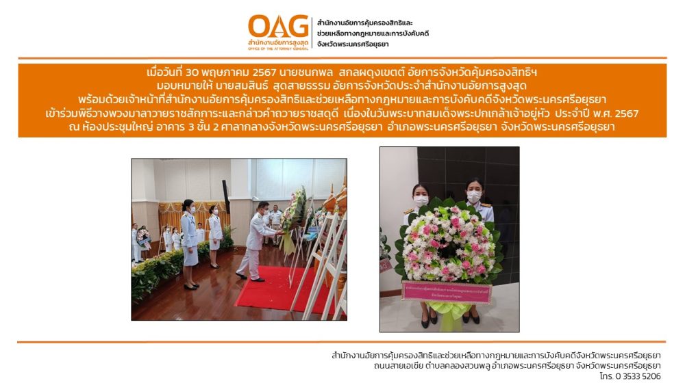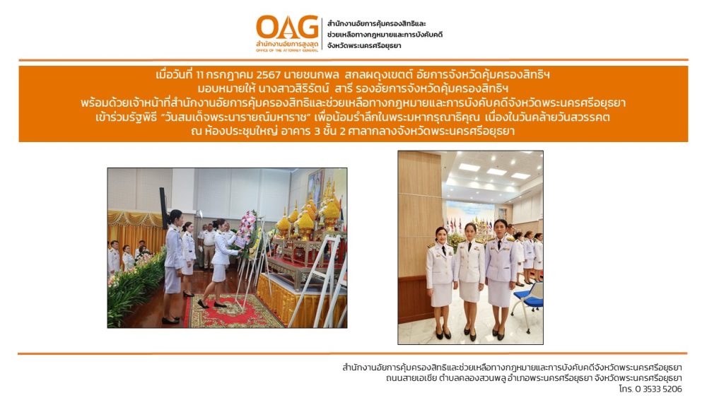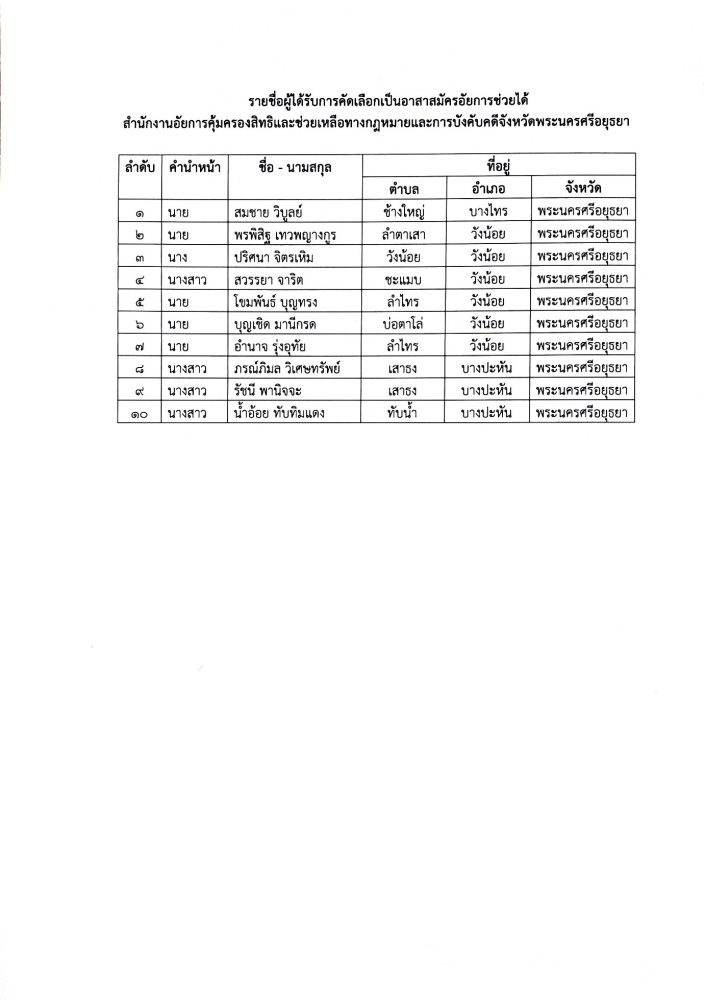 ประจำสำนักงานอัยการคุ้มครองสิทธิและช่วยเหลือทางกฎหมายและการบังคับคดีจังหวัดพระนครศรีอยุธยา