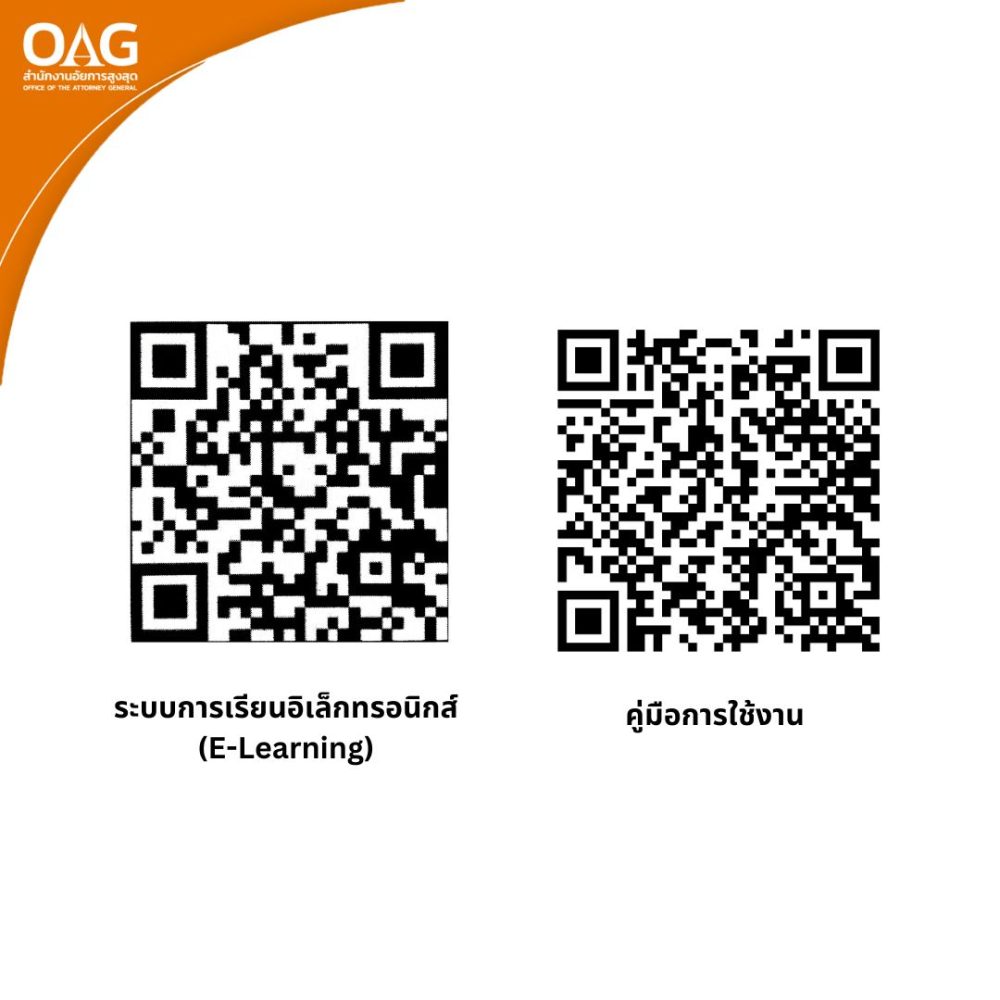 คลิกลิงค์เข้าระบบได้ที่นี่ https://e-learning.ago.go.th/ หรือ สแกน QR-Code