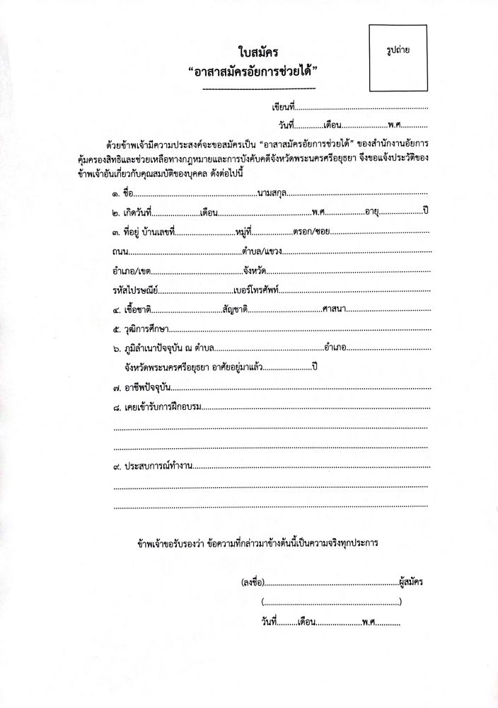 ประกาศสํานักงานอัยการคุ้มครองสิทธิและช่วยเหลือทางกฎหมายและการบังคับคดีจังหวัดพระนครศรีอยุธยา เรื่องการรับสมัคร