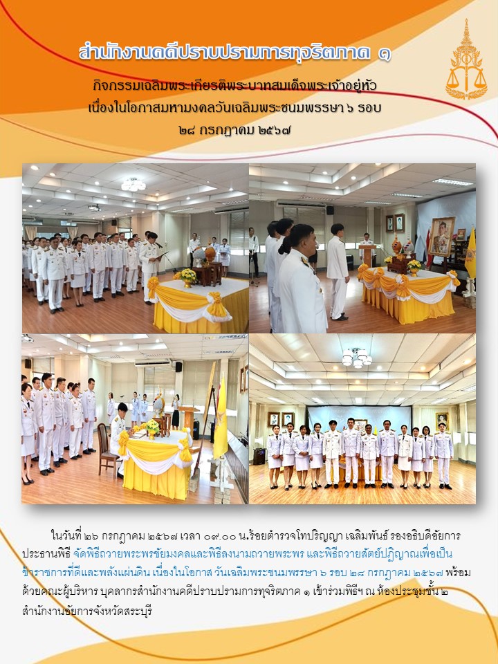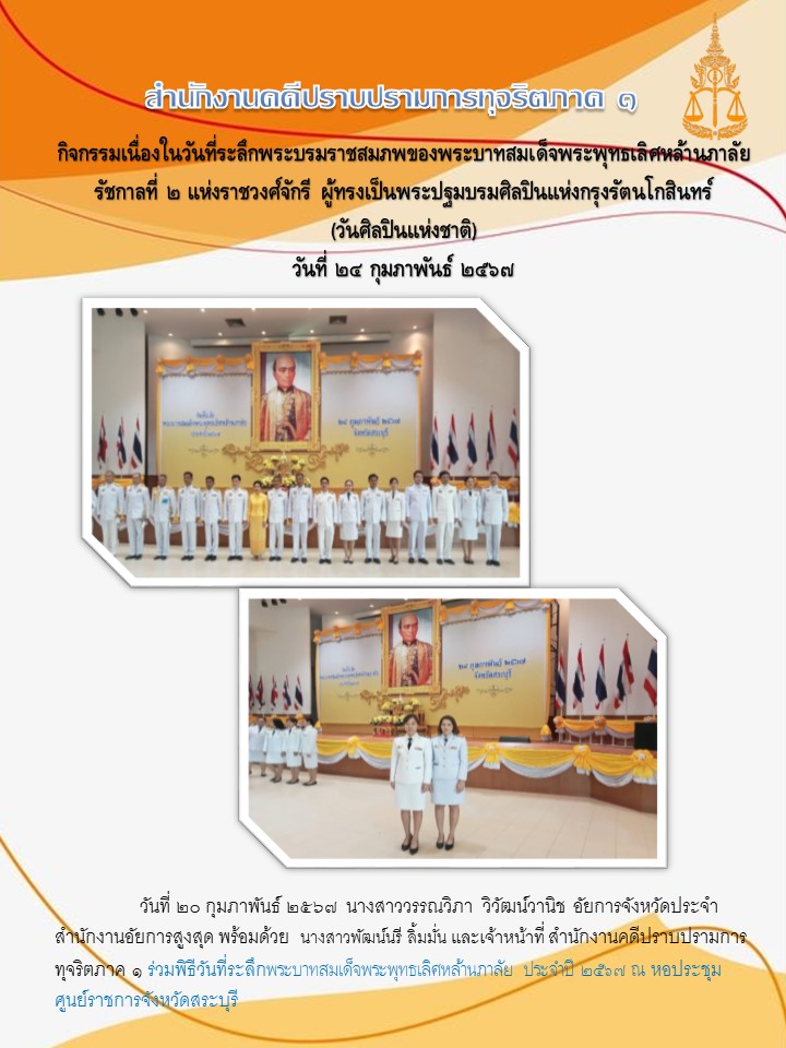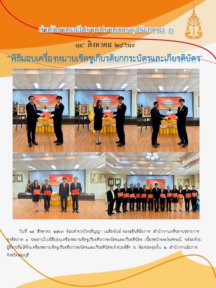 นางอุบลวรรณ ทั่งทองแท้ ผู้ตรวจการอัยการ พร้อมคณะ ประชุมชี้แจ้งนโยบายและแนวทางการปฏิบัติราชการของสำนักงานอัยการสูงสุด และเร่งรัดการปฏิบัติราชการเป็นไปอย่างมีประสิทธิภาพ ให้เป็นรูปธรรมตามระเบียบสำนักงานอัยการสูงสุดว่าด้วยการตรวจราชการของผู้ตรวจการอัยการ พ.ศ. 2565 รวมทั้งทราบปัญหา อุปสรรคและข้อคิดเห็นในการปฎิบัติราชการของหน่วยงานผู้รับการตรวจของสำนักงานคดีปราบปรามการทุจริตภาค 1 นายฉกรรก์ พานิชยิ่ง อธิบดีอัยการ สำนักงานคดีปราบปรามการทุจริตภาค 1 และคณะ เข้าร่วมประชุม ครั้งที่ 2 ประจำปีงบประมาณ พ.ศ. 2568 ในวันพุธที่ 16 กรกฎาคม 2568 ณ สำนักงานอัยการภาค 1