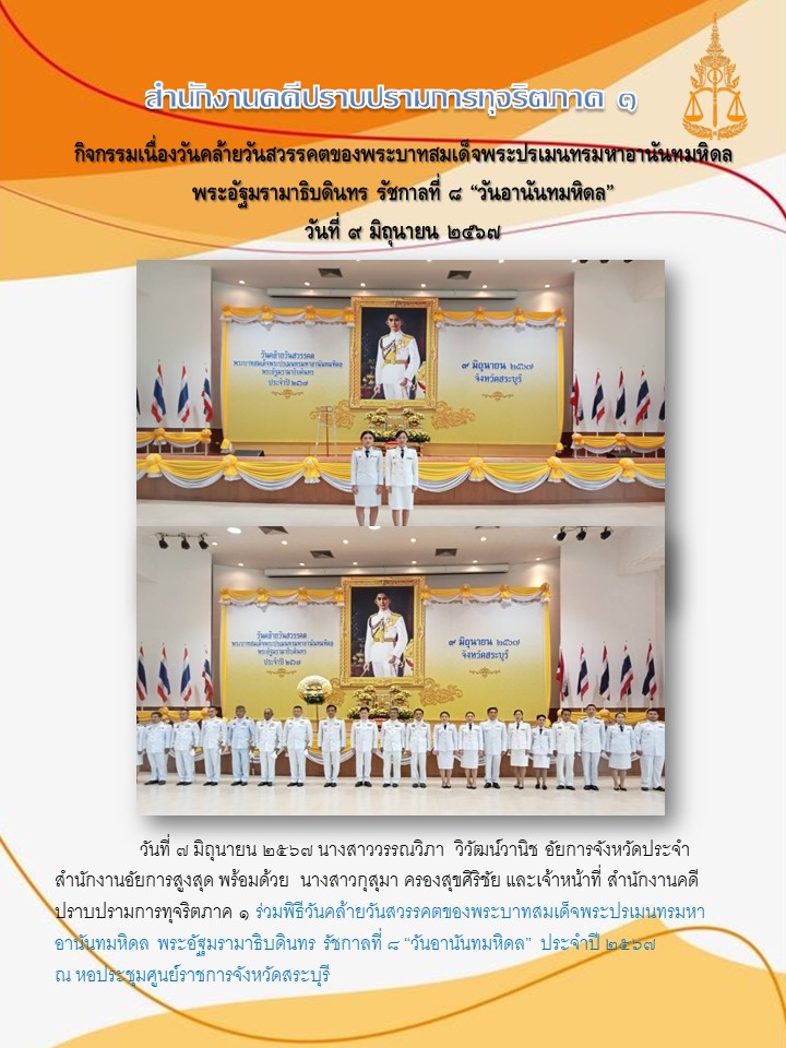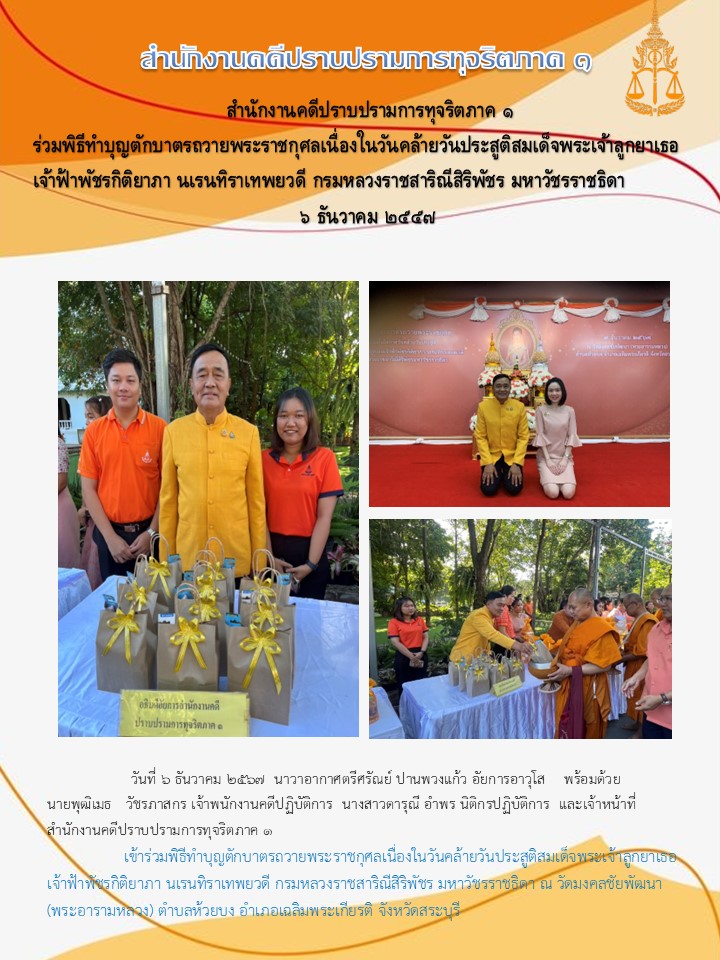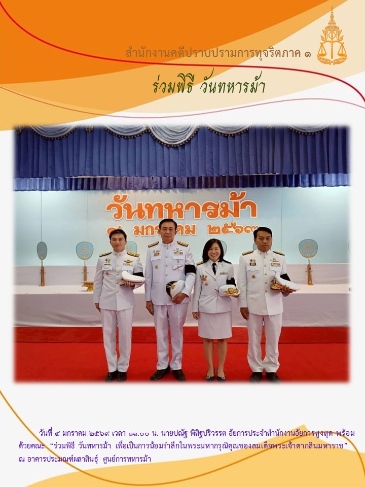 ๒.๑. รับผิดชอบงานสำนักงานคดีปราบปรามการทุจริตภาค 1 ตามที่สำนักงานอัยการสูงสุดกำหนด