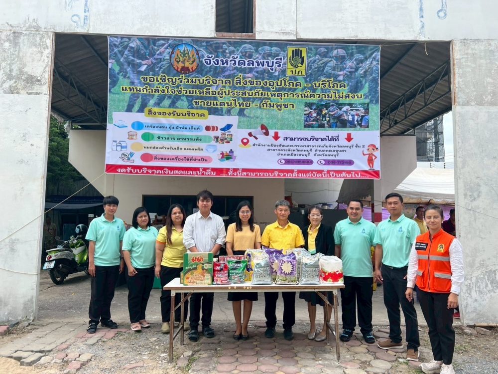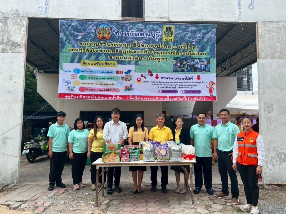 นายสุวิทย์ ชลกุลจนา อัยการจังหวัดคดีเยาวชนและครอบครัวจังหวัดลพบุรี พร้อมคณะข้าราชการสำนักงานอัยการคดีเยาวชนและครอบครัวจังหวัดลพบุรี ร่วมบริจาคสิ่งของช่วยเหลือผู้รับผลกระทบจากเหตุการณ์ความไม่สงบชายแดนไทย-กัมพูชา