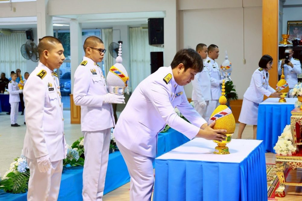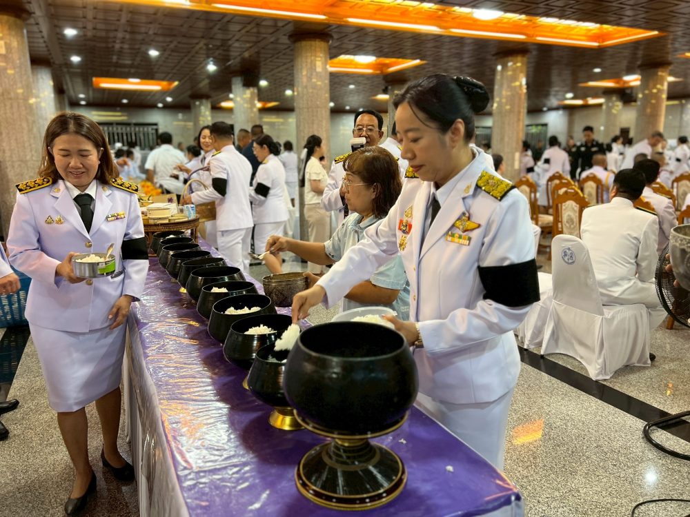 พิธีเจริญพระพุทธมนต์และทำบุญตักบาตรถวายพระราชกุศล พิธีถวายสัตย์ปฏิญาณเพื่อเป็นข้าราชการที่ดีและพลังของแผ่นดิน