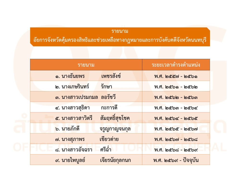 Facebook Page : สำนักงานอัยการคุ้มครองสิทธิและช่วยเหลือทางกฎหมายและการบังคับคดีจังหวัดนนทบุรี