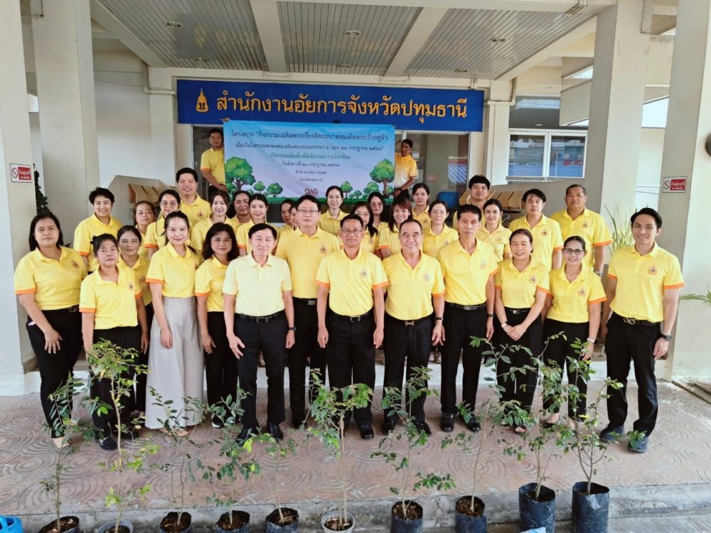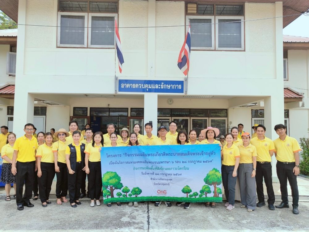 วันที่ 23 กรกฎาคม 2567 นายธวัชชัย ผ่องใส  อัยการจังหวัดปทุมานี พร้อมด้วยข้าราชการฝ่ายอัยการ เข้าร่วมโครงการ กิจกรรมเฉลิมพระเกียรติพระบาทสมเด็จพระเจ้าอยู่หัว เนื่องในโอกาสมหามงคลเฉลิมพระชนมพรรษา 6 รอบ 28 กรกฎาคม 2567 “กิจกรรมเพิ่มพื้นที่สีเขียวลดภาวะโลกร้อน” ณ สำนักงานอัยการจังหวัดปทุมธานี