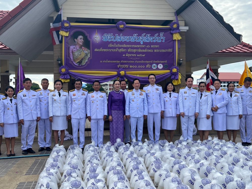 ร่วมพิธีทำบุญตักบาตร พิธีปล่อยพันธุ์สัตว์น้ำ ถวายพระราชกุศล สมเด็จพระนางเจ้าฯ พระบรมราชินี เนื่องในโอกาสวันเฉลิมพระชนมพรรษา 3 มิถุนายน 2567 ณ ท่าน้ำสวนเทพปทุมธานี จังหวัดปทุมธานี
