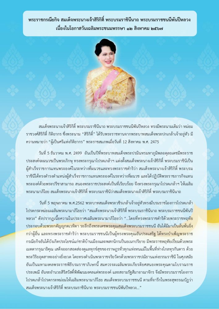 เนื่องในโอกาสวันเฉลิมพระชนมพรรษาสมเด็จพระนางเจ้าฯ พระบรมราชินี