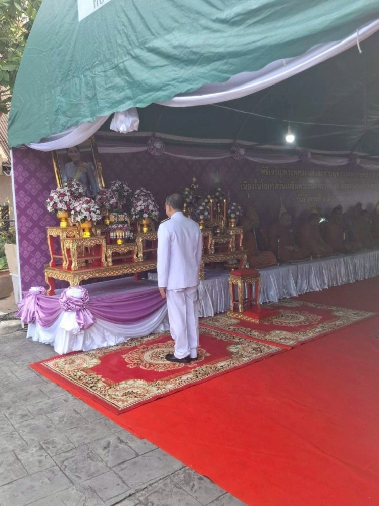 เข้าร่วมพิธีเจริญพระพุทธมนต์และทำบุญตักบาตรถวายพระราชกุศล เพื่อถวายเป็นพระราชกุศล เนื่องในโอกาสวันเฉลิมพระชนมพรรษาสมเด็จพระนางเจ้าฯ พระบรมราชินี