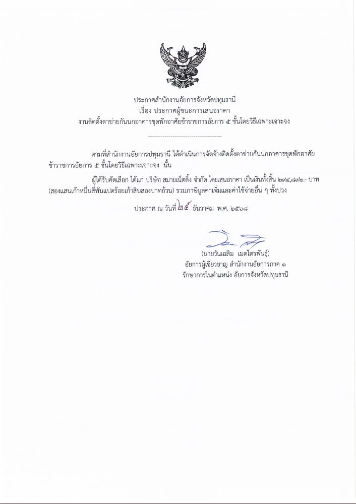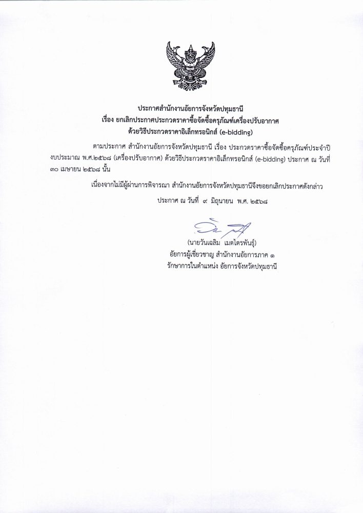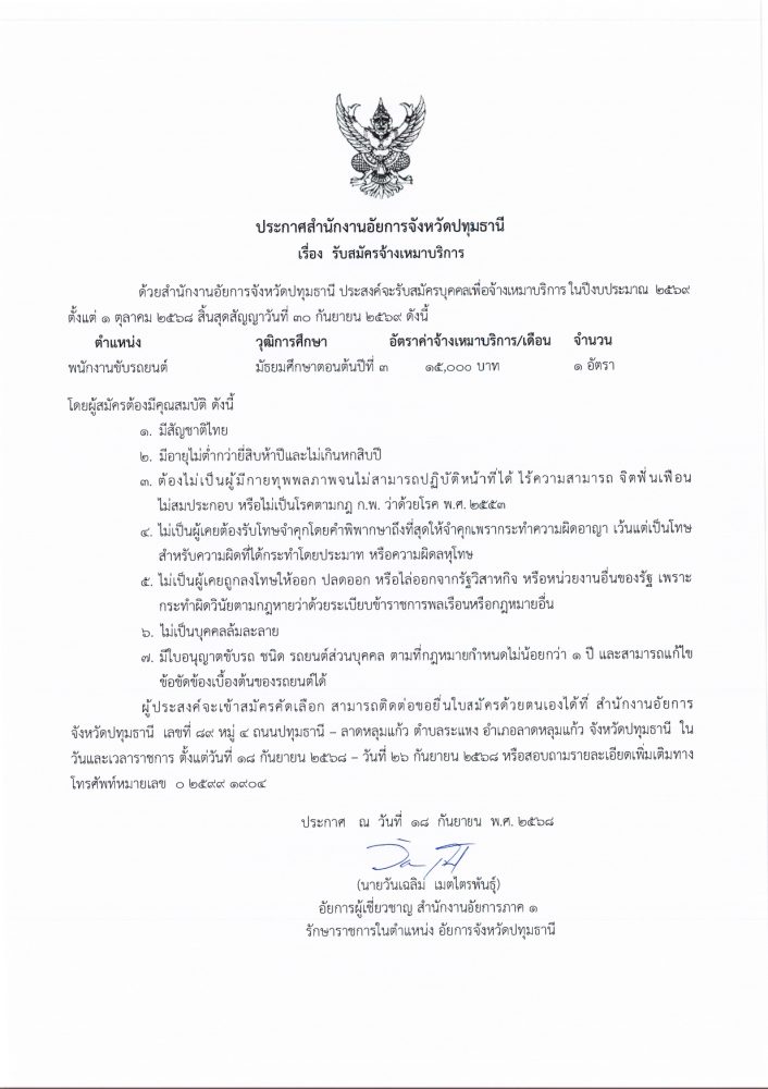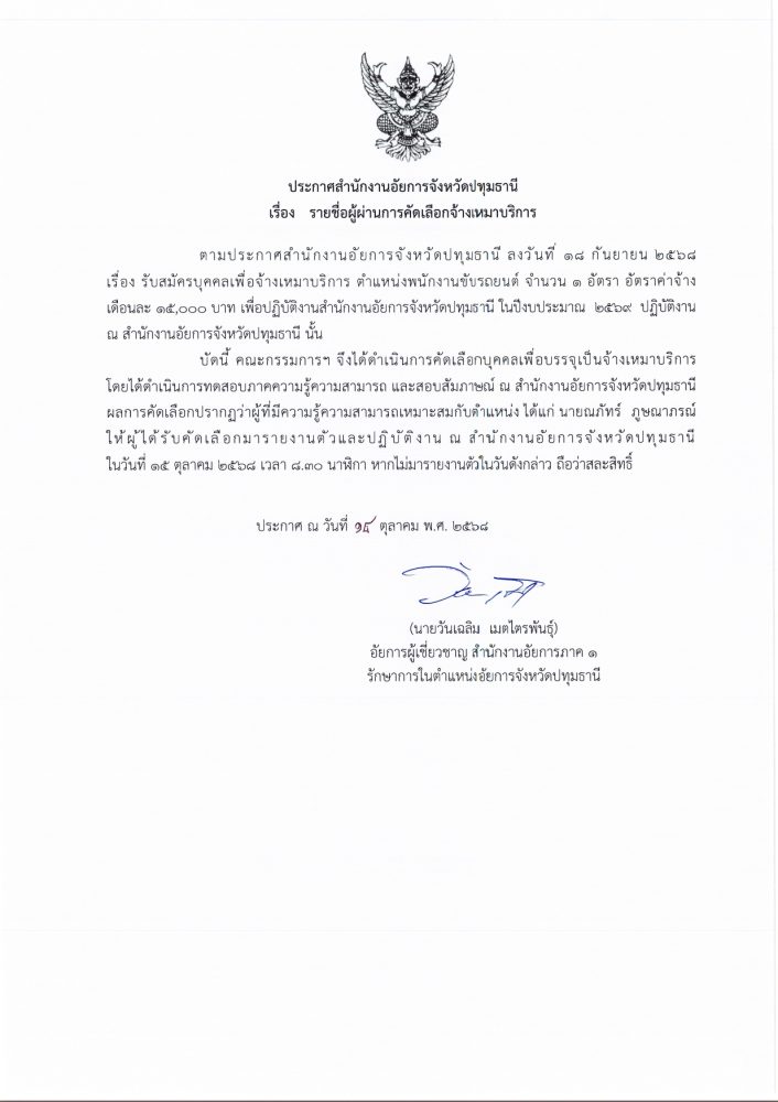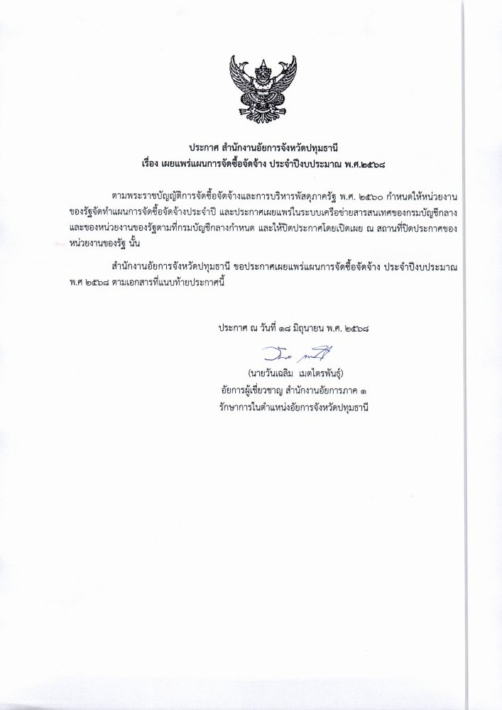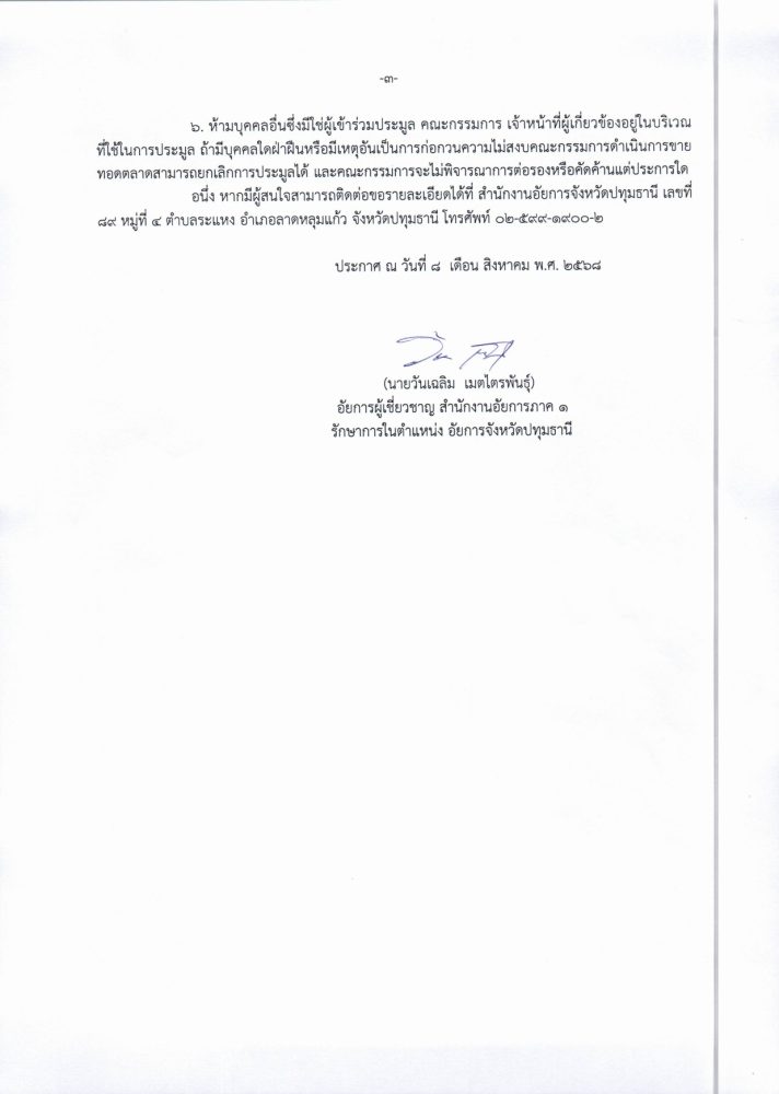 ในวันที่ ๑๓ ตุลาคม ๒๕๖๘ ณ อาคารศาลารักษ์ปทุม ศาลากลางจังหวัดปทุมธานี
