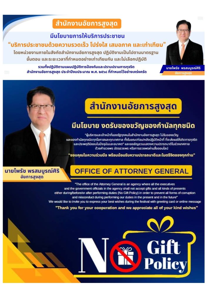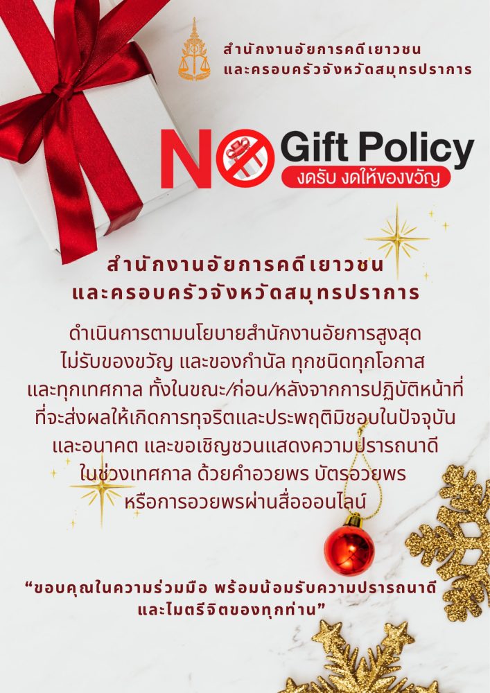 สำนักงานอัยการคดีเยาวชนและครอบครัวจังหวัดสมุทรปราการ ขอเชิญส่งความปรารถนาดีด้วยบัตรอวยพรแทนการให้ของขวัญและของกำนัลทุกชนิด