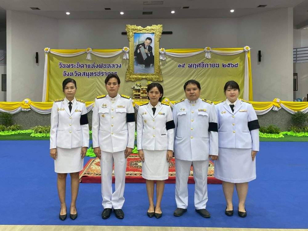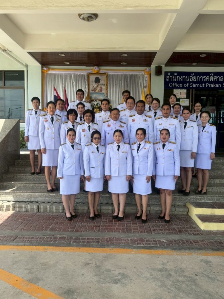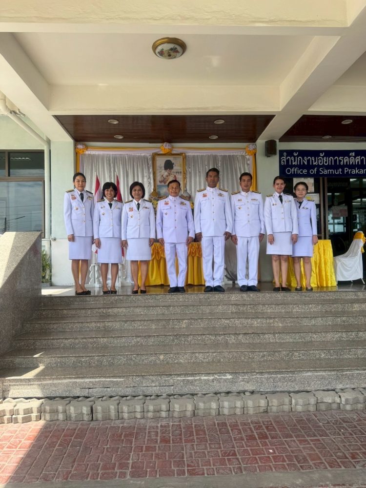 ในวันศุกร์ที่ ๑๔ พฤศจิกายน ๒๕๖๘ เวลา ๐๙.๐๐ นาฬิกา ข้าราชการอัยกรสำนักงานอัยการคดีเยาวชนและครอบครัวจังหวัดสมุทรปราการและข้าราชการธุรการ นำโดยนางสาวจารุณี สิริพลังคานนท์ อัยการจังหวัดคดีเยาวชนและครอบครัวจังหวัดสมุทรปราการ มอบให้ นางสาวณิชา ธรรมนิจกุล อัยการจังหวัดผู้ช่วย เข้าร่วมพิธีถวายราชสักการะวางพานพุ่มดอกไม้สดเบื้องหน้าพระบรมฉายาลักษณ์พระบาทสมเด็จพระบรมชนกาธิเบศร มหาภูมิพลอดุลยเดชมหาราช บรมนาถบพิตร เนื่องใน“วันพระบิดาแห่งฝนหลวง” ประจำปี ๒๕๖๘ ณ ศาลาประชาคม จังหวัดสมุทรปราการ