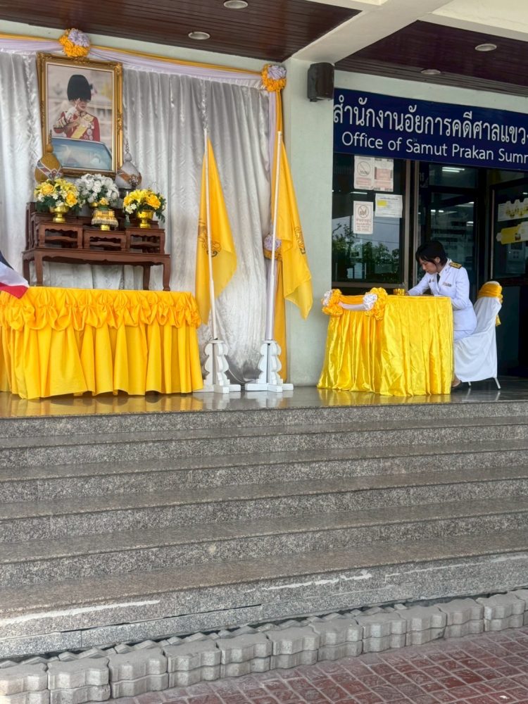 ในวันพุธที่ ๒๘ มกราคม ๒๕๖๙ เวลา ๑๐.๐๐ นาฬิกา นางสาวจารุณี สิริพลังคานนท์ อัยการจังหวัดคดีเยาวชนและครอบครัวจังหวัดสมุทรปราการ พร้อมด้วยข้าราชการฝ่ายอัยการ บุคลากรสำนักงานอัยการคดีเยาวชนและครอบครัวจังหวัดสมุทรปราการ และสำนักงานอัยการคดีศาลแขวงสมุทรปราการ ได้จัดลงนามถวายความอาลัยสมเด็จพระนางเจ้าสิริกิติ์ พระบรมราชินีนาถ พระบรมราชชนนีพันปีหลวง เพื่อเป็นการน้อมสำนึกในพระมหากรุณาธิคุณเป็นล้นพ้นอันหาที่สุดมิได้