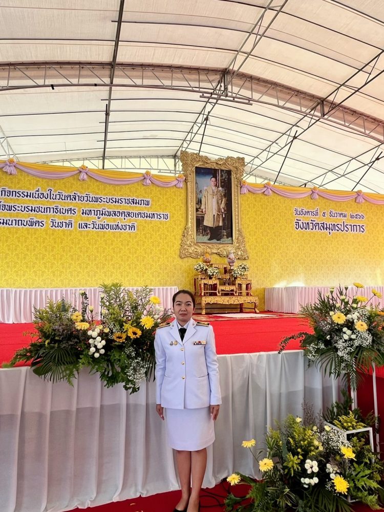 ในวันพฤหัสบดีที่ ๑๔ พฤศจิกายน ๒๕๖๗ เวลา ๐๘.๐๐ นาฬิกา นางสาวจินดาพร จินดาศักดิ์ชัย อัยการจังหวัดผู้ช่วย ผู้แทนอัยการจังหวัดคดีเยาวชนและครอบครัวจังหวัดสมุทรปราการ พร้อมด้วยเจ้าหน้าที่เข้าร่วมพิธีถวายราชสักการะวางพานพุ่มดอกไม้สดเบื้องหน้าพระบรมฉายาลักษณ์พระบาทสมเด็จพระบรมชนกาธิเบศร มหาภูมิพลอดุลยเดชมหาราช บรมนาถบพิตร เนื่องใน “วันพระบิดาแห่งฝนหลวง” ประจำปี ๒๕๖๗ ณ ศาลาประชาคม จังหวัดสมุทรปราการร