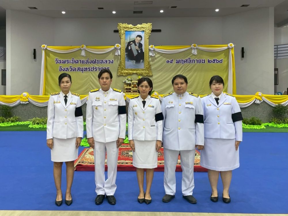ในวันศุกร์ที่ ๑๔ พฤศจิกายน ๒๕๖๘ เวลา ๐๙.๐๐ นาฬิกา นางสาวณิชา ธรรมนิจกุล อัยการจังหวัดผู้ช่วย ผู้แทนอัยการจังหวัดคดีเยาวชนและครอบครัวจังหวัดสมุทรปราการ พร้อมด้วยเจ้าหน้าที่เข้าร่วมพิธีถวายราชสักการะวางพานพุ่มดอกไม้สดเบื้องหน้าพระบรมฉายาลักษณ์พระบาทสมเด็จพระบรมชนกาธิเบศร มหาภูมิพลอดุลยเดชมหาราช บรมนาถบพิตร เนื่องใน “วันพระบิดาแห่งฝนหลวง” ประจำปี ๒๕๖๘ ณ ศาลาประชาคม จังหวัดสมุทรปราการร