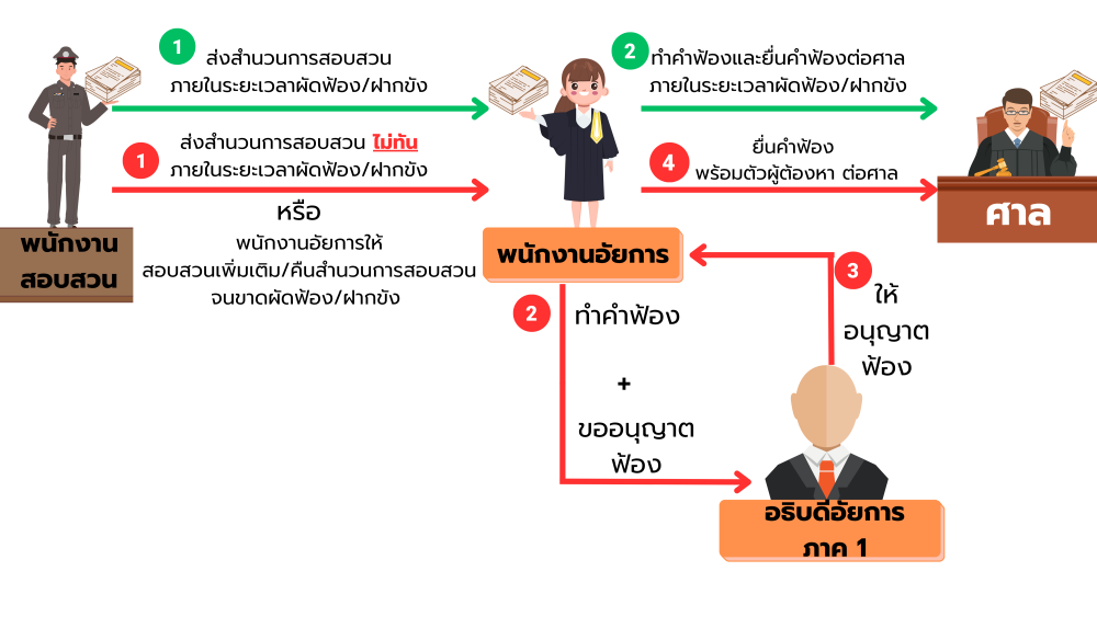 ๑.พนักงานอัยการยื่นฟ้องต่อศาลเยาวชนและครอบครัวภายในสามสิบวันนับแต่วันที่เด็กหรือเยาวชนนั้นถูกจับกุมหรือปรากฏตัวอยู่ต่อหน้าพนักงานสอบสวน แล้วแต่กรณี