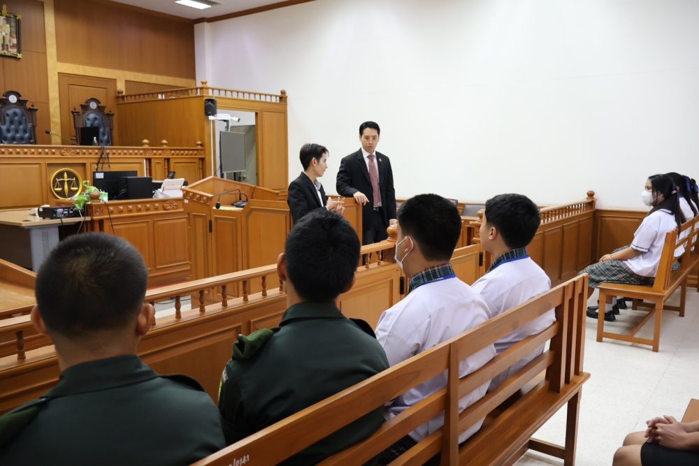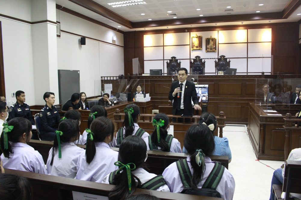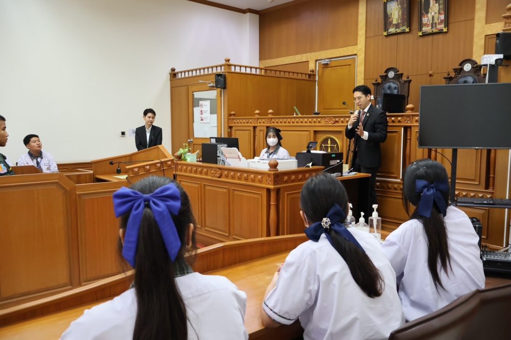 นางสาวจิตรปรีดี สกุลเสาวภาค อัยการจังหวัดคดีศาลแขวงสระบุรี นายภูตะวัน กัณฑ์นิล อัยการจังหวัดผู้ช่วย และนางสาวมนัสนันท์ ยางงาม ร่วมโครงการ 143 ปี รำลึกพระองค์เจ้ารพีพัฒนศักดิ์ พระบิดาแห่งกฎหมายไทยเนื่องในวันรพี ประจำปี 2568 ผ่านการแสดงศาลจำลอง เพื่อเผยแพร่และประชาสัมพันธ์ความรู้กฎหมายให้แก่นักเรียนและประชาชน ณ ศาลอาญาคดีทุจริตและประพฤติมิชอบภาค 1
