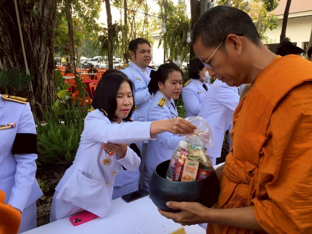 นางสาวมนัสนันท์ ยางงาม อัยการจังหวัดผู้ช่วย ร่วมพิธีทำบุญตักบาตรถวายพระราชกุศล เนื่องในโอกาสวันคล้ายวันประสูติสมเด็จพระเจ้าน้องนางเธอ เจ้าฟ้าจุฬาภรณวลัยลักษณ์ อัครราชกุมารี