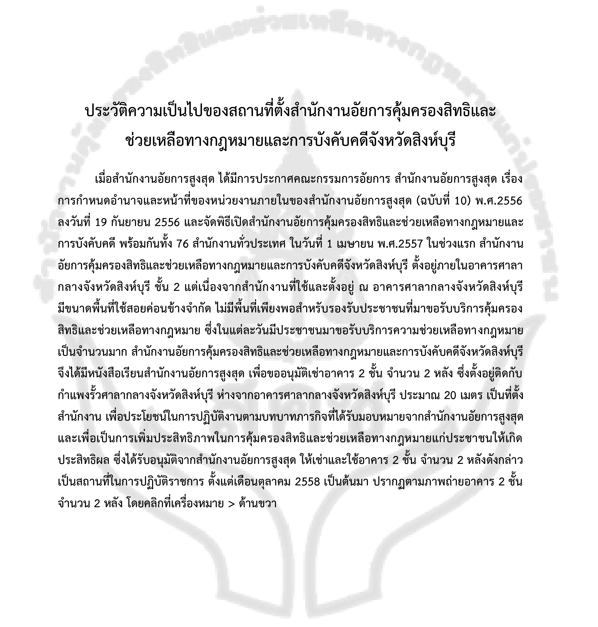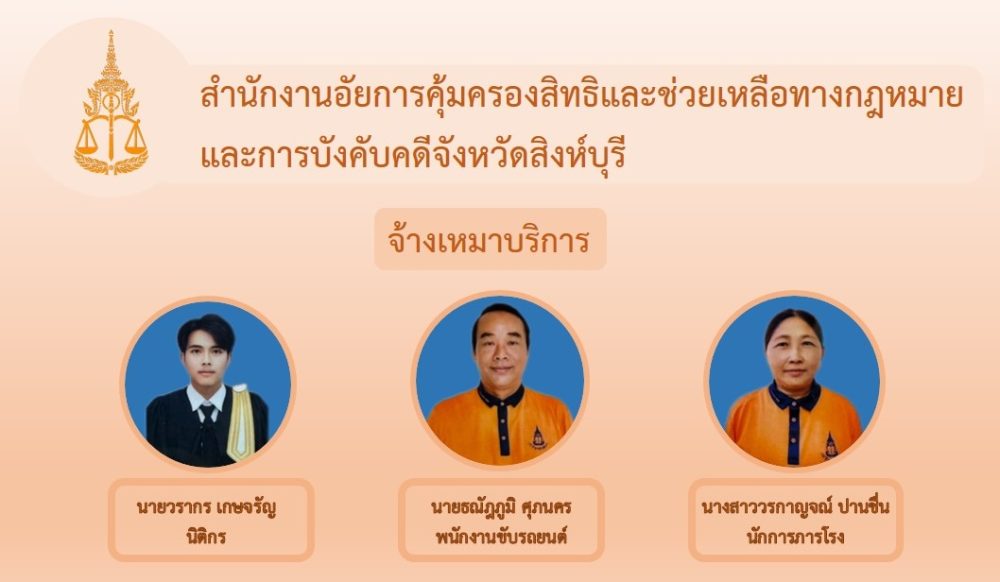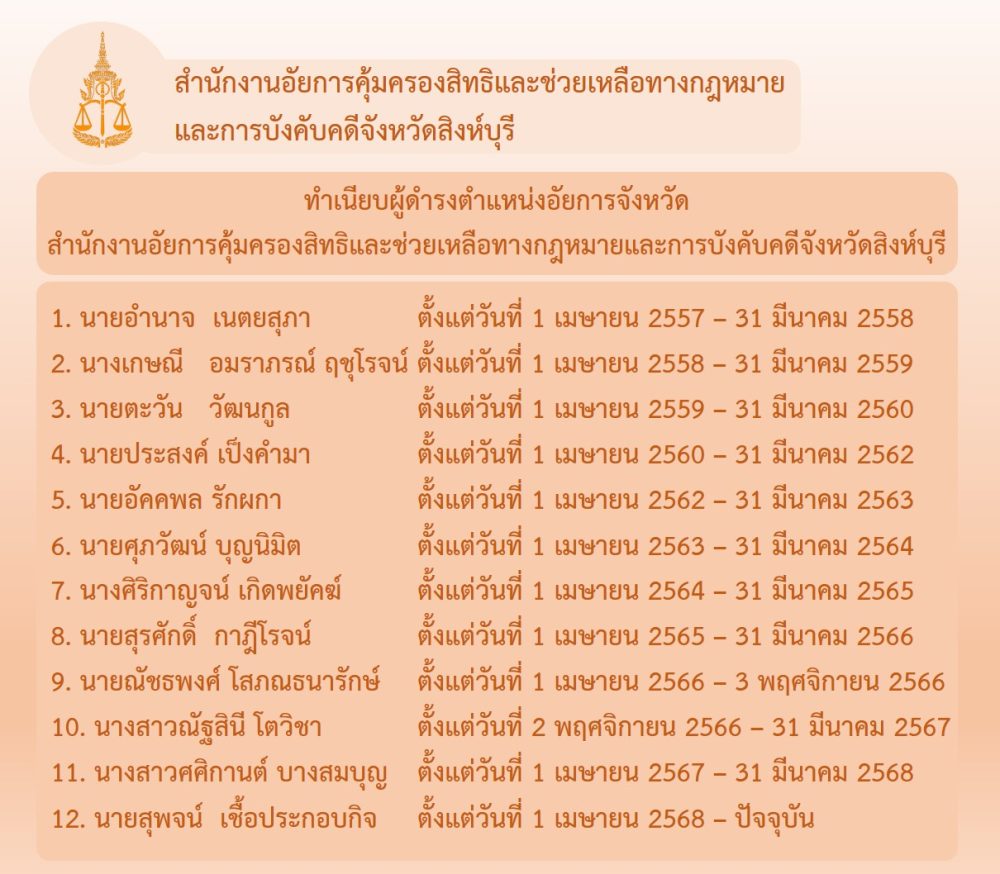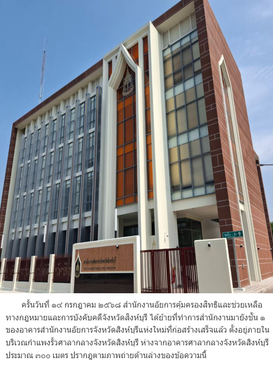 ประกาศสำนักงานอัยการคุ้มครองสิทธิและช่วยเหลือทางกฎหมายและการบังคับคดีจังหวัดสิงห์บุรี