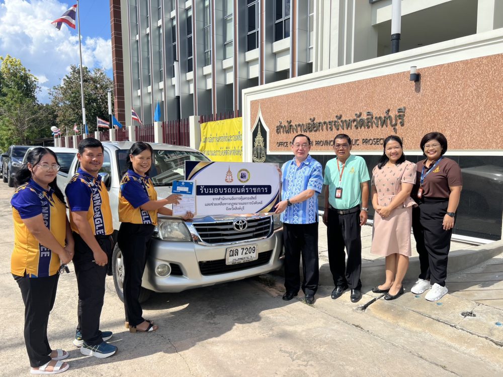 ตามที่สำนักงานอัยการภาค 1 พิจารณาแล้ว อนุมัติให้สำนักงานอัยการคุ้มครองสิทธิและช่วยเหลือทางกฎหมายและการบังคับคดีจังหวัดสิงห์บุรี จำหน่ายครุภัณฑ์ยานพาหนะและขนส่ง รายการรถยนต์กระบะ ยี่ห้อ TOYOTA หมายเลขทะเบียน ฌล 7209 กรุงเทพมหานคร โดยวิธีโอนให้กับโรงเรียนบ้านหนองลีวิทยาคม หมู่ที่ 1 ตำบลโพทะเล อำเภอค่ายบางระจัน จังหวัดสิงห์บุรี สำนักงานอัยการคุ้มครองสิทธิและช่วยเหลือทางกฎหมายและการบังคับคดีจังหวัดสิงห์บุรี ได้ส่งมอบรถยนต์ราชการ ดังกล่าว ให้กับโรงเรียนบ้านหนองลีวิทยาคมเรียบร้อยแล้ว