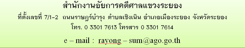 จังหวัดระยอง อำเภอเมืองระยอง จังหวัดระยองในการนี้ นางสาวจุรีรัตน์ ประยูรฉัตรพันธุ์ อัยการจังหวัดประจำสำนักงานอัยการสูงสุด พร้อมด้วยข้าราชการฝ่ายอัยการ และข้าราชการธุรการ เป็นตัวแทนสำนักงานอัยการคดีศาลแขวงระยองเข้าร่วมพิธี