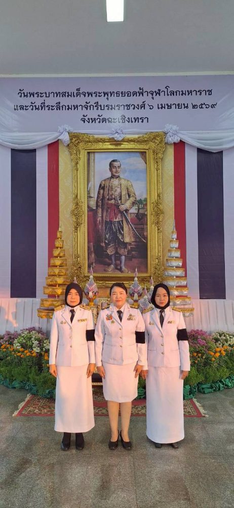 วันจันทร์ที่ ๖ เมษายน ๒๕๖๙ เวลา ๗.๐๐ น. ณ ศาลาจตุรมุข หน้าศาลากลางจังหวัดฉะเชิงเทรา นางสาววนิดา เศวตทิฆัมพร อัยการจังหวัดคดีเยาวชนและครอบครัวจังหวัดฉะเชิงเทรา พร้อมด้วยคณะข้าราชการ สำนักงานอัยการคดีเยาวชนและครอบครัวจังหวัดฉะเชิงเทรา ร่วมพิธี “วันพระบาทสมเด็จพระพุทธยอดฟ้าจุฬาโลกมหาราช และวันระลึกมหาจักรีบรมราชวงศ์”