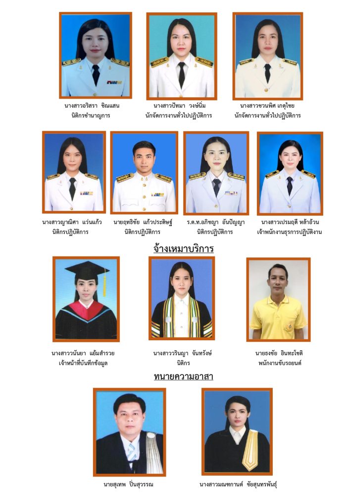 ข้าราชการธุรการ : ผู้อำนวยการสำนักอำนวยการ 1 อัตรา, เจ้าพนักงานคดีชำนาญการ 1 อัตรา นิติกรปฏิบัติการ 3 อัตรา นักจัดการงานทั่วไปปฏิบัติการ 2 อัตรา เจ้าพนักงานธุรการปฏิบัติงาน 1 อัตรา