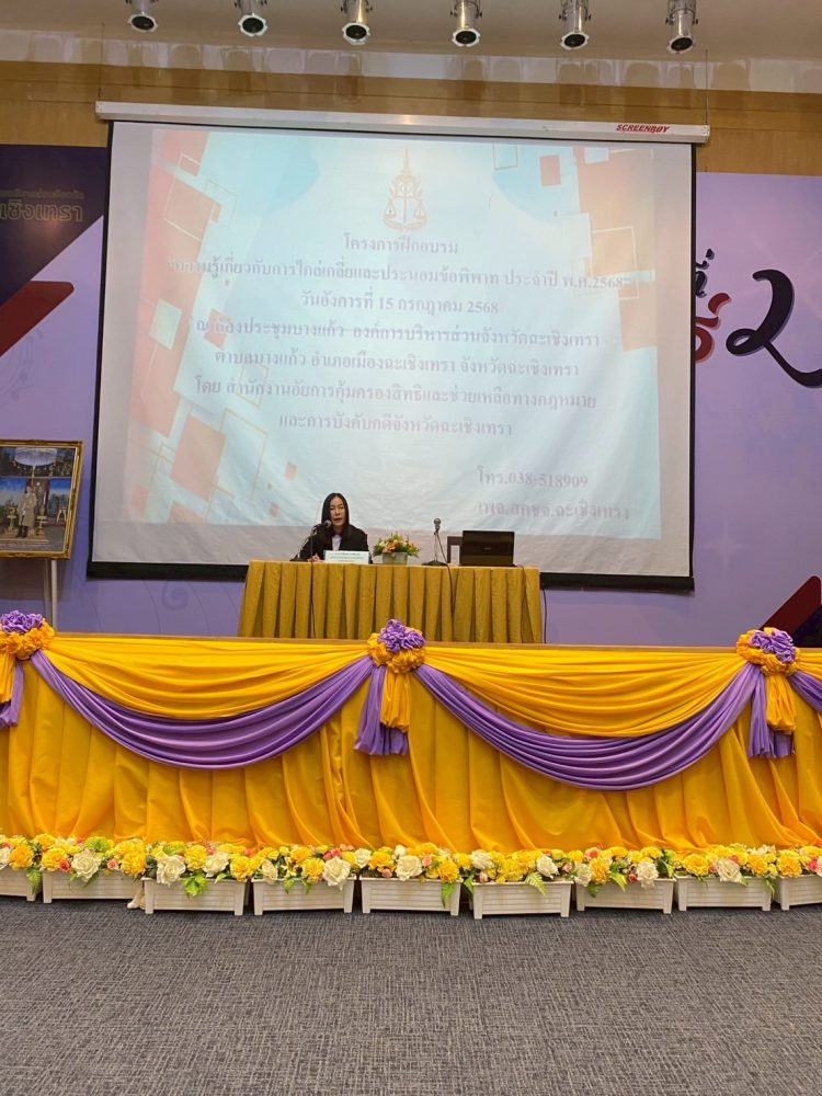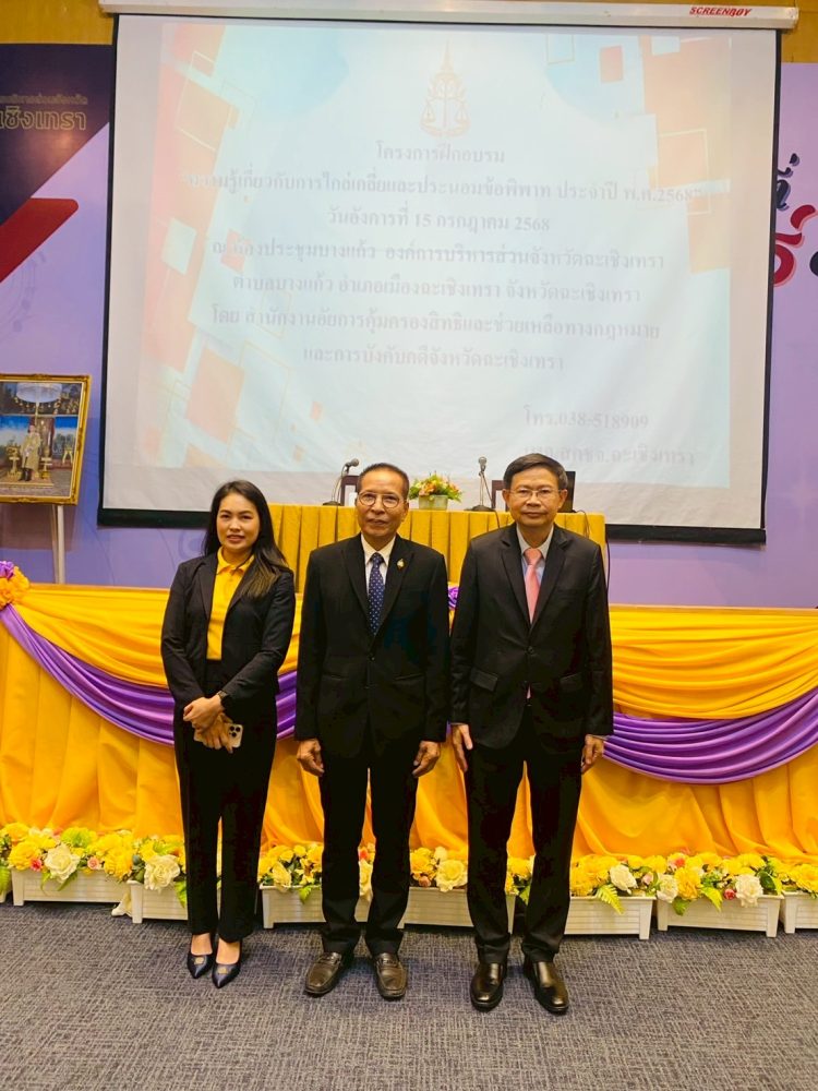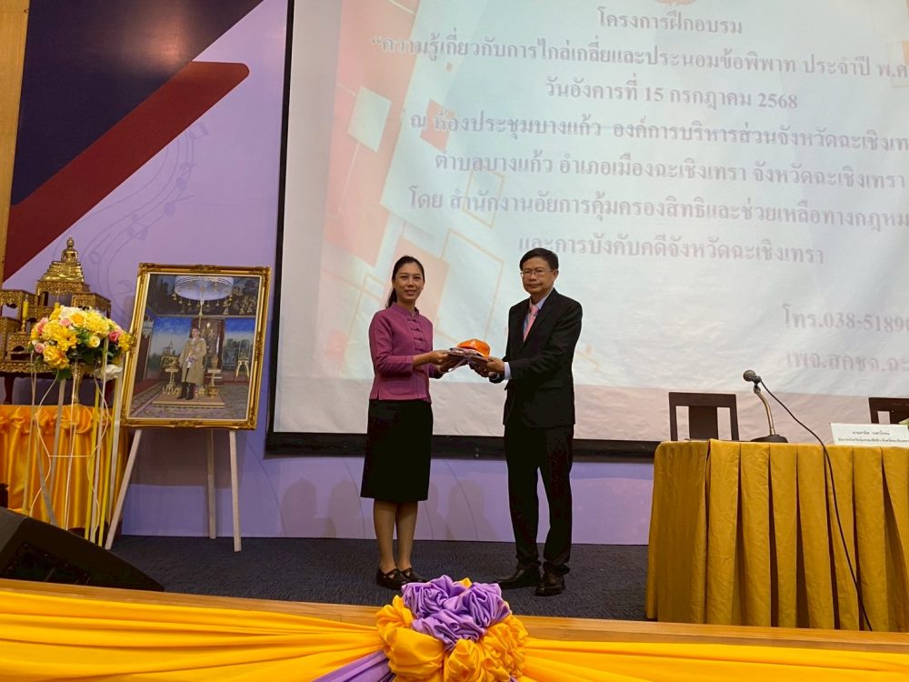 จัดโครงการฝึกอบรมหลักสูตร “ความรู้เกี่ยวกับการไกล่เกลี่ยและประนอมข้อพิพาท ประจำปี พ.ศ. 2568” ในวันอังคารที่ 15 กรกฎาคม 2568 ณ ห้องประชุมบางแก้ว องค์การบริหารส่วนจังหวัดฉะเชิงเทรา จังหวัดฉะเชิงเทรา