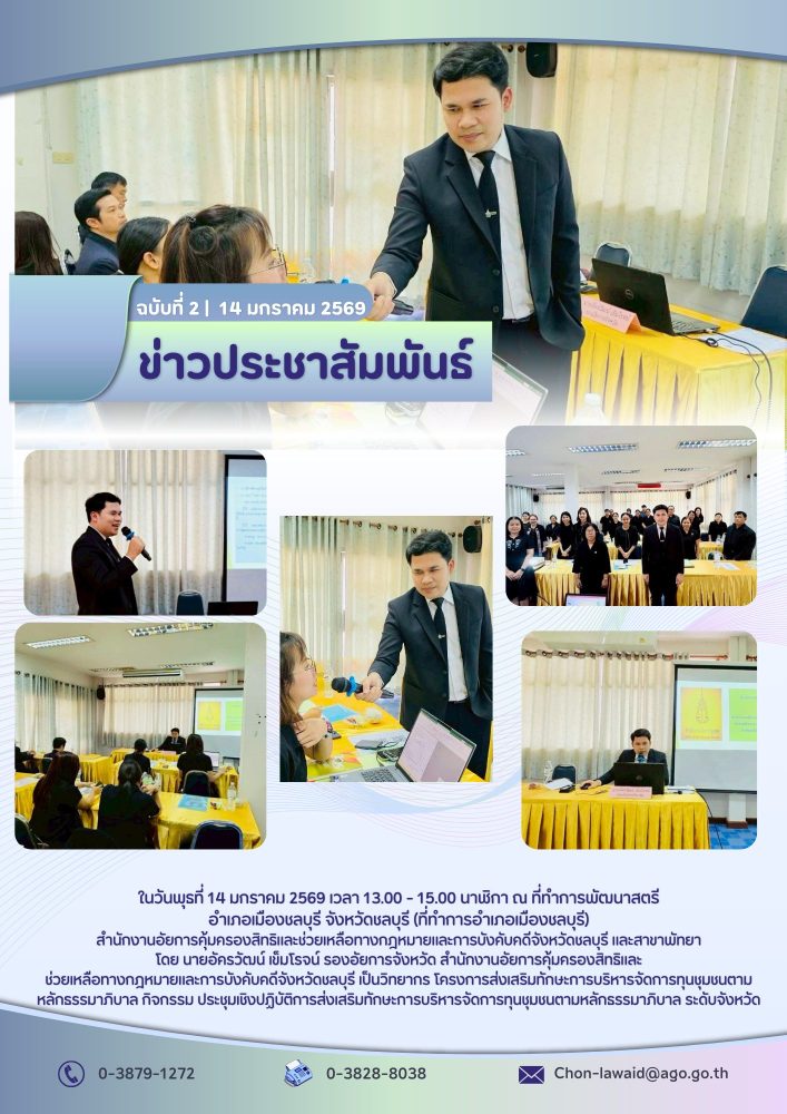 เมื่อวันศุกร์ที่ 14 พฤศจิกายน 2568 เวลา 09.00 น. สำนักงานอัยการคุ้มครองสิทธิและช่วยเหลือทางกฎหมายและการบังคับคดีจังหวัดชลบุรี