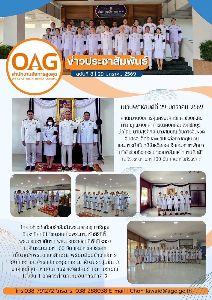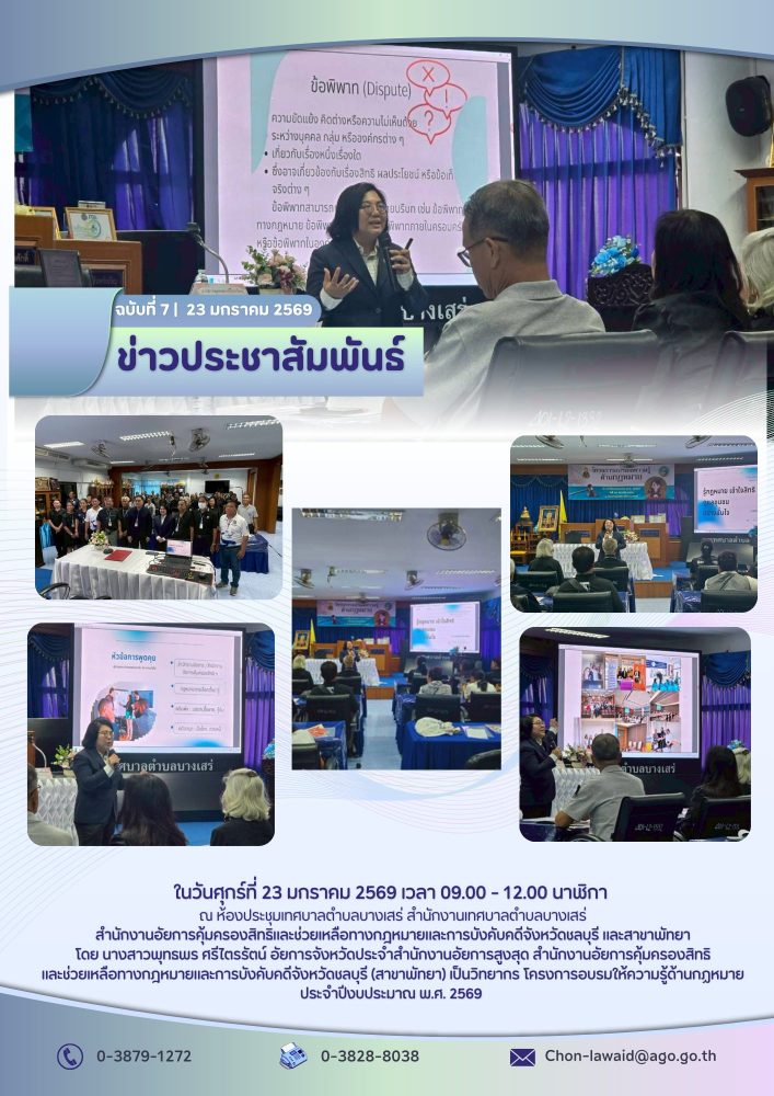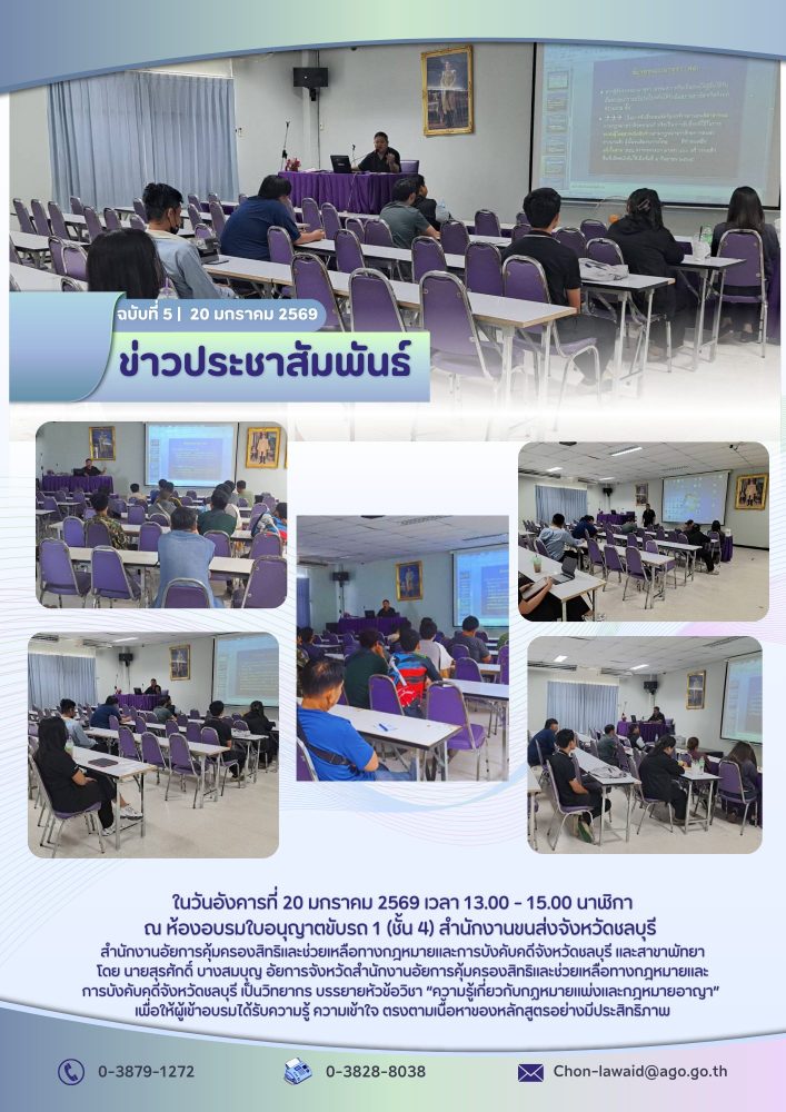 เมื่อวันจันทร์ที่ 24 พฤศจิกายน 2568 เวลา 06.30 น. สำนักงานอัยการคุ้มครองสิทธิและช่วยเหลือทางกฎหมายและการบังคับคดีจังหวัดชลบุรี