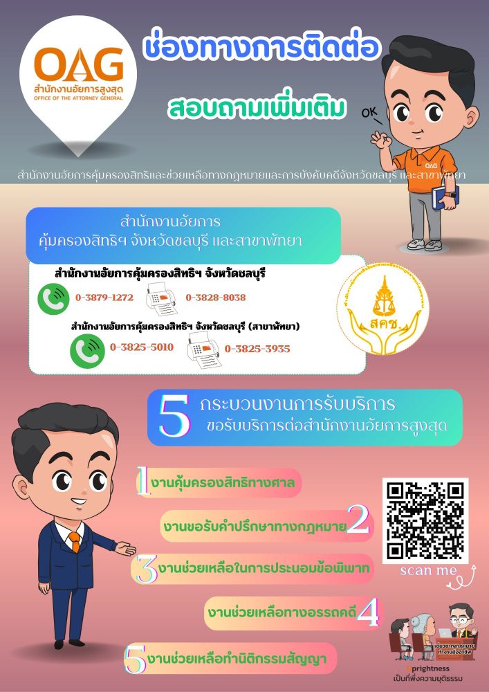 สำนักงานอัยการคุ้มครองสิทธิและช่วยเหลือทางกฎหมายและการบังคับคดีจังหวัดชลบุรี และ สาขาพัทยา ได้มีช่องทางการติดต่อเพื่อการให้คำปรึกษา