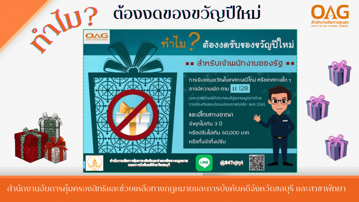 ทั้งสิ้น และไม่รับสินน้ำใจ ขอให้ประชาชนอย่าหลงเชื่อการหลอกลวงเอาทรัพย์สินจากท่านเพื่อไปวิ่งเต้นพนักงานอัยการในการปฏิบัติหน้าที่