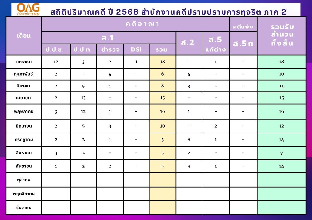 - นโยบายและดำริดำเนินการ เรื่อง การจัดหาสถานที่ทำการสำนักงานคดีปราบปรามการทุจริตภาค 2 แห่งใหม่