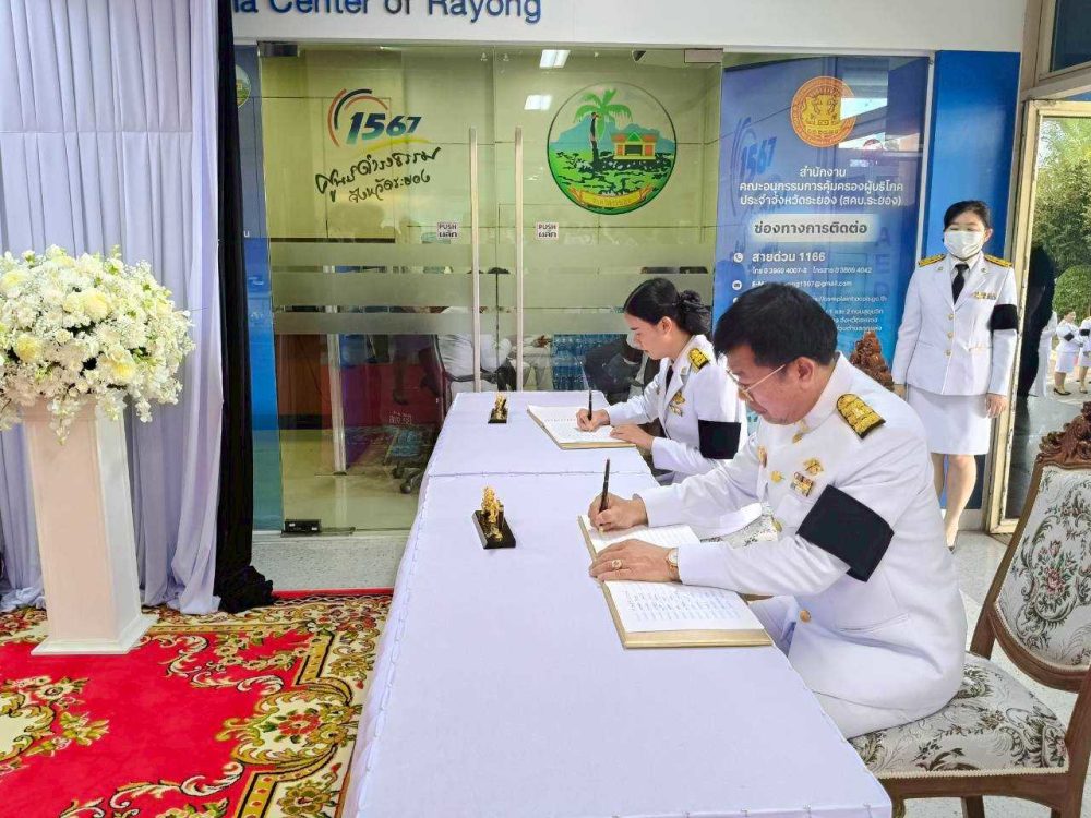 เมื่อเวลา 15.00 น. วันที่ 26 ตุลาคม 2568 ที่บริเวณห้องโถง ชั้น 1 อาคารศาลากลางจังหวัดระยอง ศูนย์ราชการจังหวัดระยอง ตำบลเนินพระ อำเภอเมืองระยอง จังหวัดระยอง นายภาสกร บุญญลักษม์ ผู้ว่าราชการจังหวัดระยอง เป็นประธานในพิธีถวายน้ำสรงพระบรมศพและร่วมลงนามถวายความอาลัย สมเด็จพระนางเจ้าสิริกิติ์ พระบรมราชินีนาถ พระบรมราชชนนีพันปีหลวง เบื้องหน้าพระฉายาลักษณ์ สมเด็จพระนางเจ้าสิริกิติ์ พระบรมราชินีนาถ พระบรมราชชนนีพันปีหลวง โดยมีนายสุนทร ธรรมเสมอ รองอธิบดีอัยการ สำนักงานคดีปราบปรามการทุจริตภาค 2 พร้อมด้วยข้าราชการในสังกัด ร่วมพิธีถวายน้ำสรงพระบรมศพและร่วมลงนามถวายความอาลัย น้อมรำลึกถึงพระมหากรุณาธิคุณของสมเด็จพระนางเจ้าสิริกิติ์ พระบรมราชินีนาถ พระบรมราชชนนีพันปีหลวง อย่างหาที่สุดมิได้