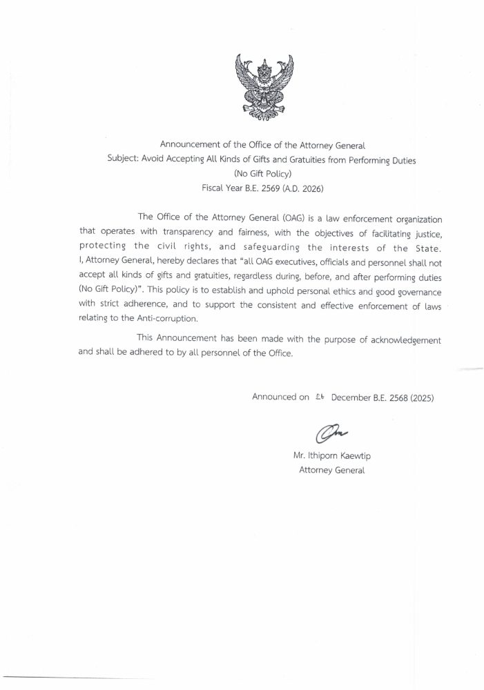 เผยแพร่คำสั่งอัยการสูงสุด