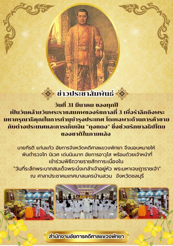 พิธีถวายเครื่องราชสักการะและวางพานพุ่ม และพิธีจุดเทียนถวายพระพรชัยมงคล สมเด็จพระนางเจ้าฯ พระบรมราชินี เนื่องในโอกาสวันเฉลิมพระชนมพรรษา 3 มิถุนายน 2568 ณ ศาลากลางจังหวัดชลบุรี