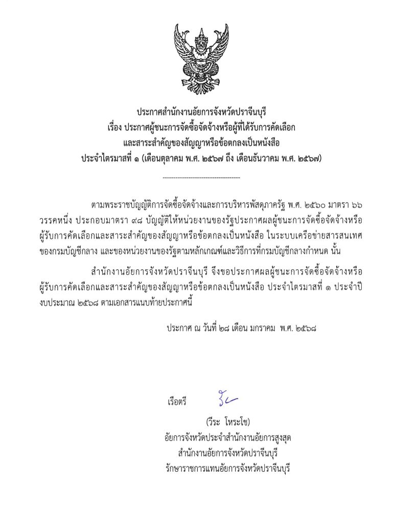 วันที่ 7 ธันวาคม 2568 ณ ห้องศรีมหาโพธิ์ ศาลากลางจังหวัดปราจีนบุรี