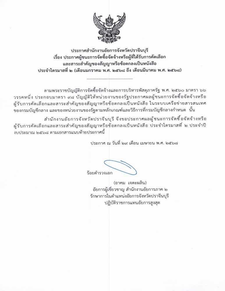 วันพุธที่ 2 เมษายน 2568 ณ หอประชุมจังหวัดปราจีนบุรี ตำบลไม้เค็ด อำเภอเมืองปราจีนบุรี จังหวัดปราจีนบุรี