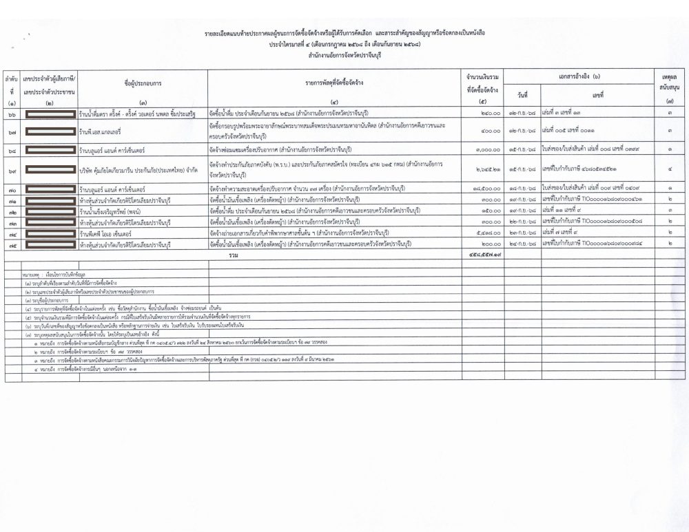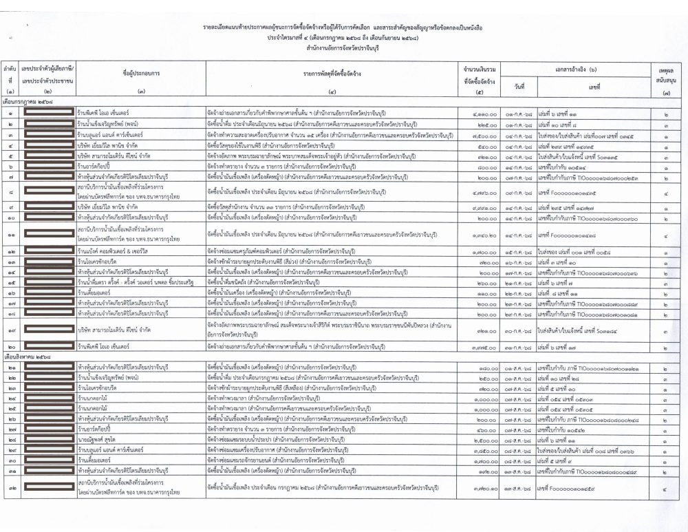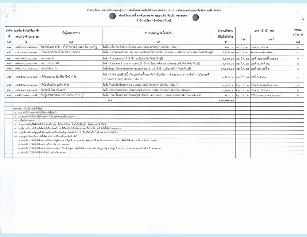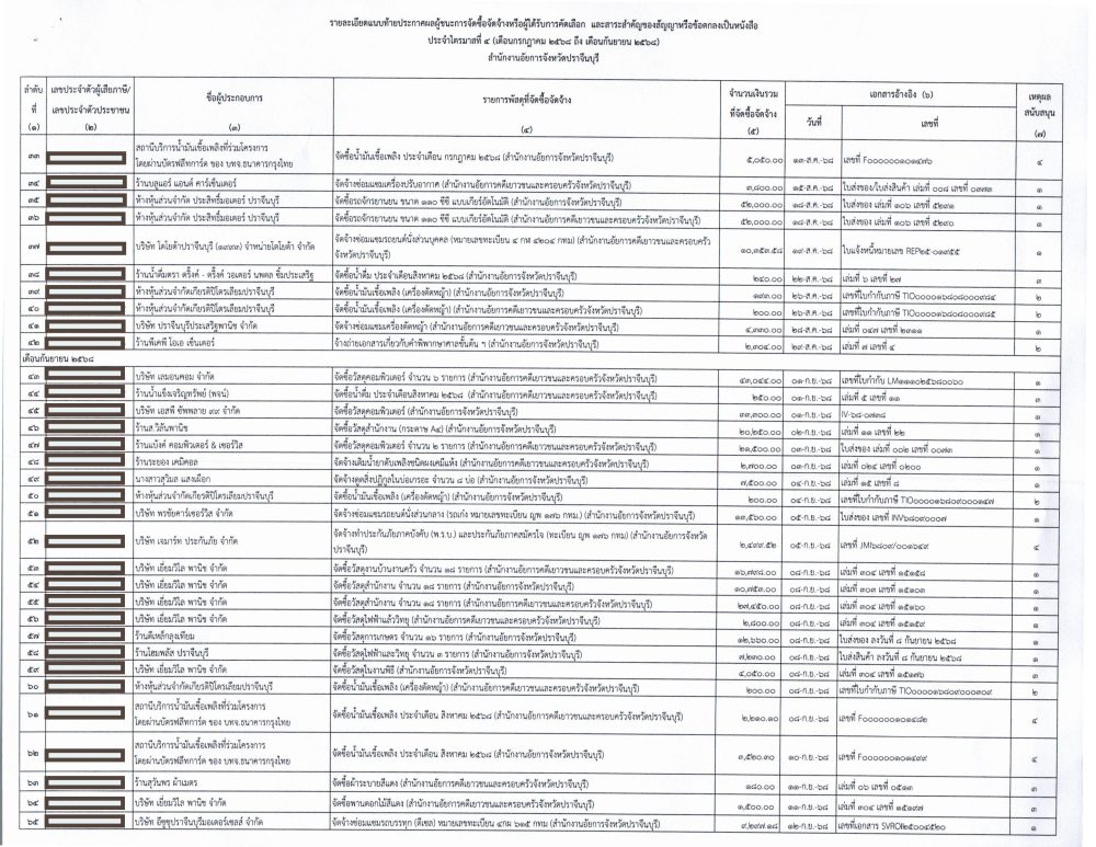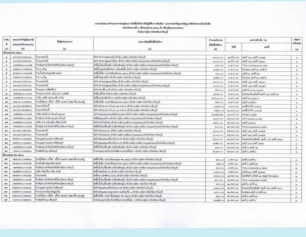 | ลำดับที่ | ประเภท | ม.ค. | ก.พ. | มี.ค. | เม.ย. | พ.ค. | มิ.ย. | ก.ค. | ส.ค. | ก.ย. | ต.ค. | พ.ย. | ธ.ค. |