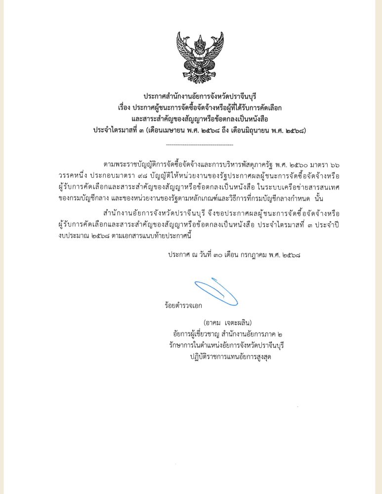 วันที่ ๑๒ สิงหาคม ๒๕๖๘ ณ หอประชุมจังหวัดปราจีนบุรี ศูนย์ราชการจังหวัดปราจีนบุรี ต.ไม้เค็ด อ.เมืองปราจีนบุรี จ.ปราจีนบุรี