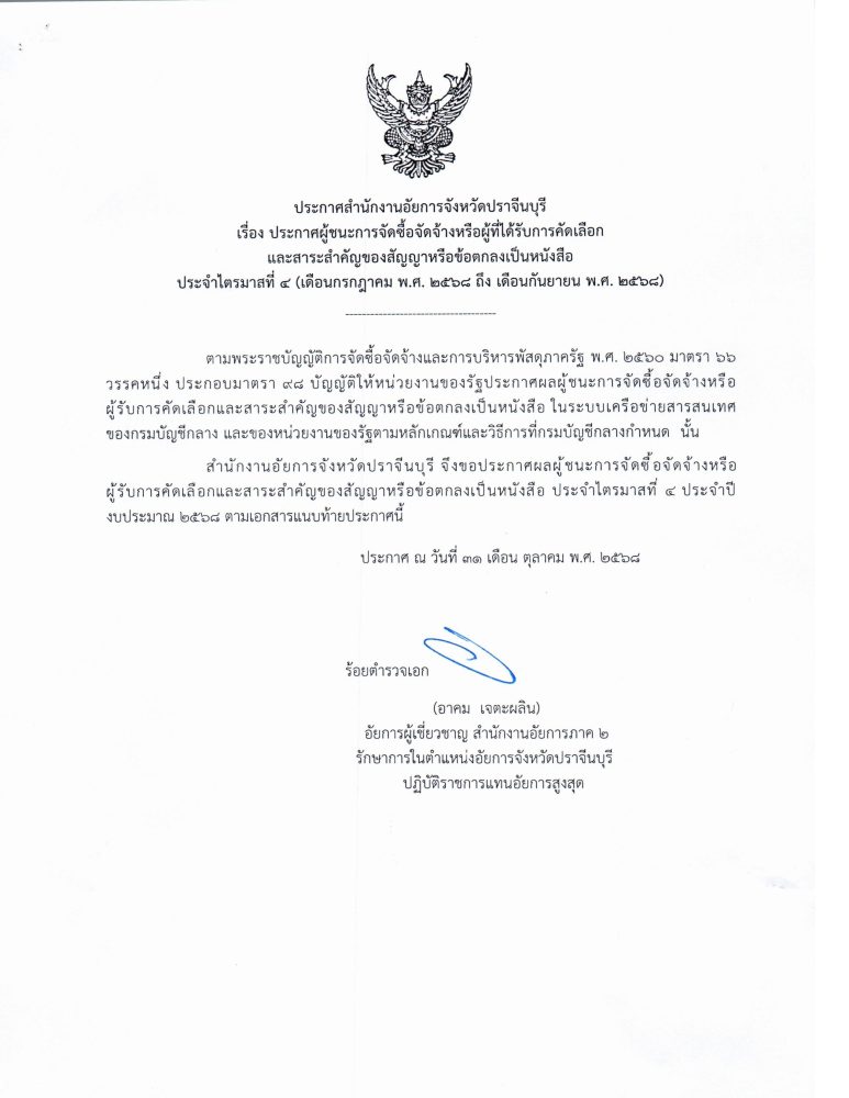 วันที่ 14 พฤศจิกายน 2568 ณ อาคารหอประชุมจังหวัดปราจีนบุรี
