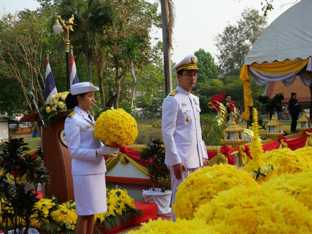 ร่วมพิธีวางพานพุ่มดอกไม้และถวายสักการะ