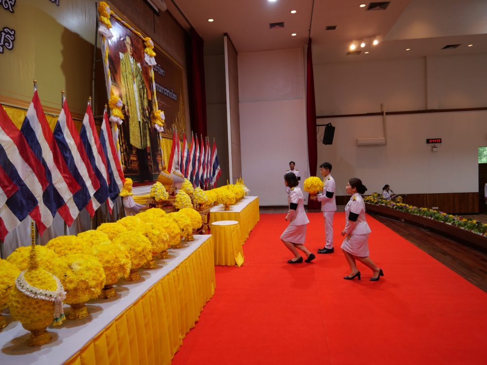 ร่วมพิธีถวายเครื่องราชสักการะ วางพานพุ่ม และพิธีจุดเทียนถวายพระพรชัยมงคล