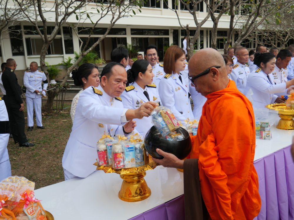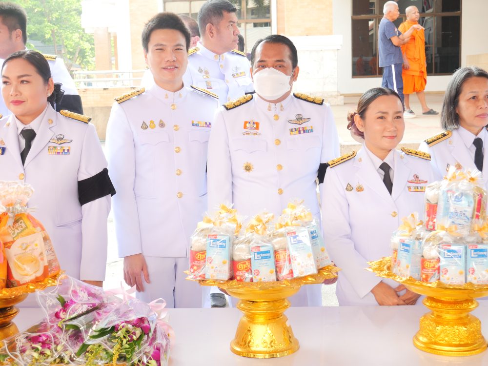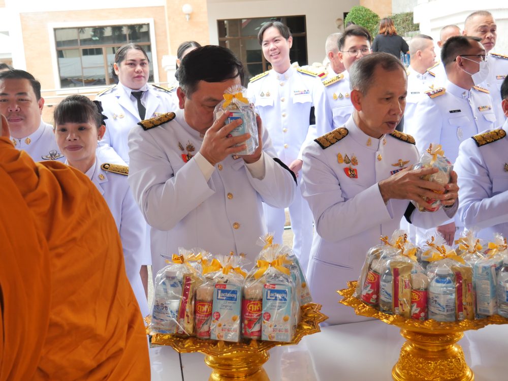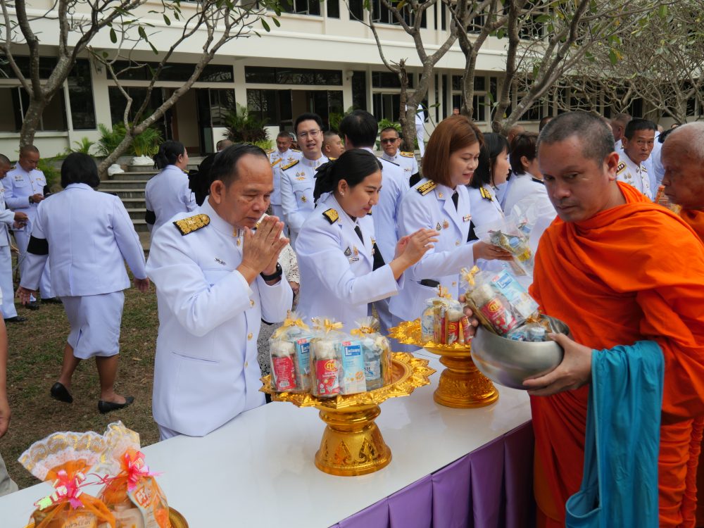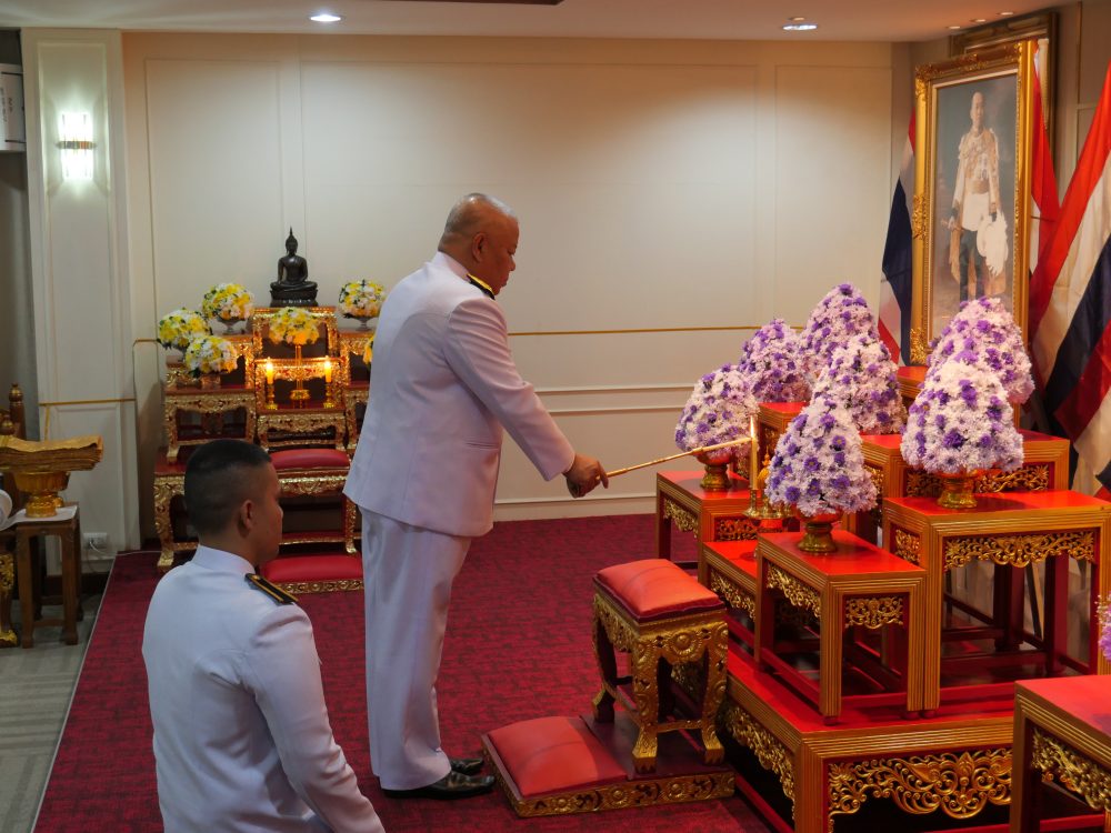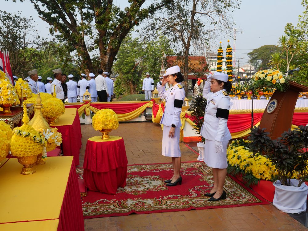 พร้อมเจ้าหน้าที่ เข้าร่วมพิธีเจริญพระพุทธมนต์และทำบุญตักบาตรถวายพระราชกุศล และพิธีวางพุ่มดอกไม้ถวายบังคม