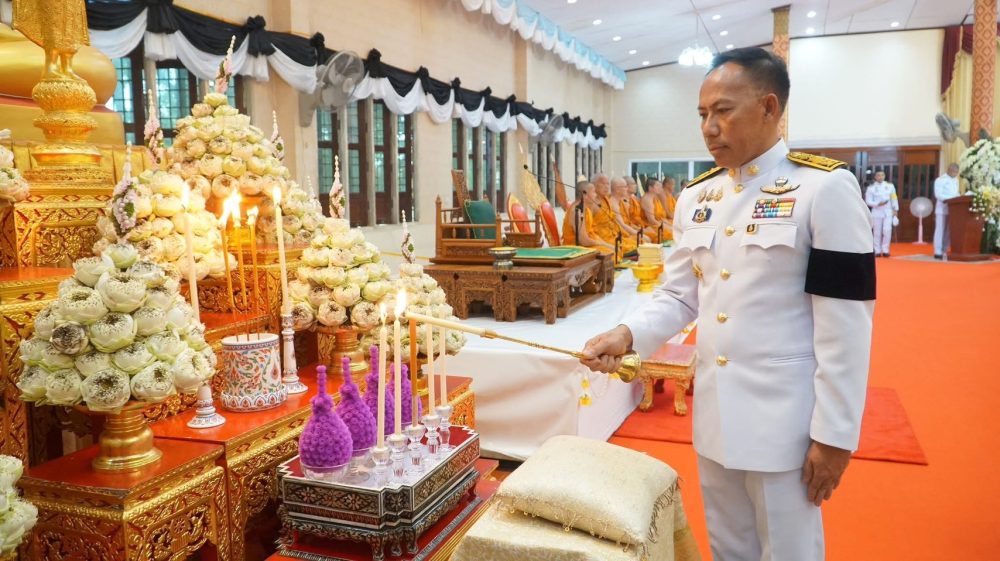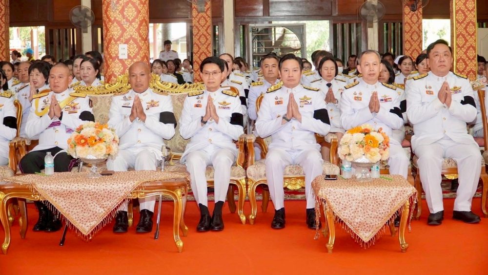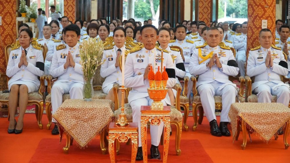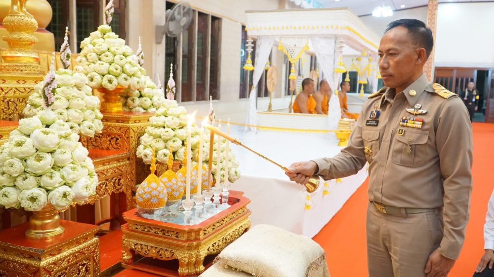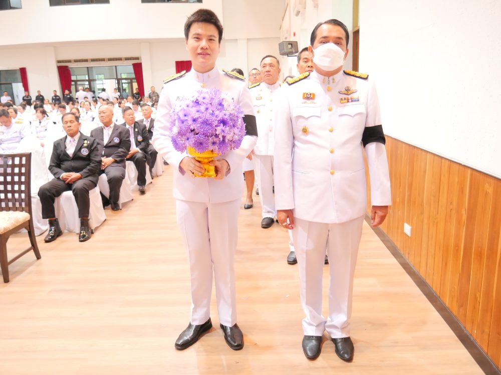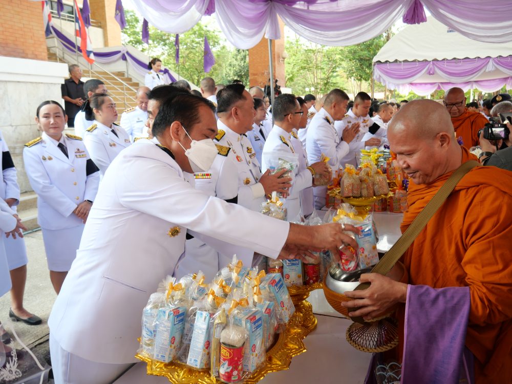 พร้อมเจ้าหน้าที่ เข้าร่วมพิธีเจริญพระพุทธมนต์และทำบุญตักบาตรถวายพระราชกุศล และพิธีวางพุ่มดอกไม้ถวายบังคม
