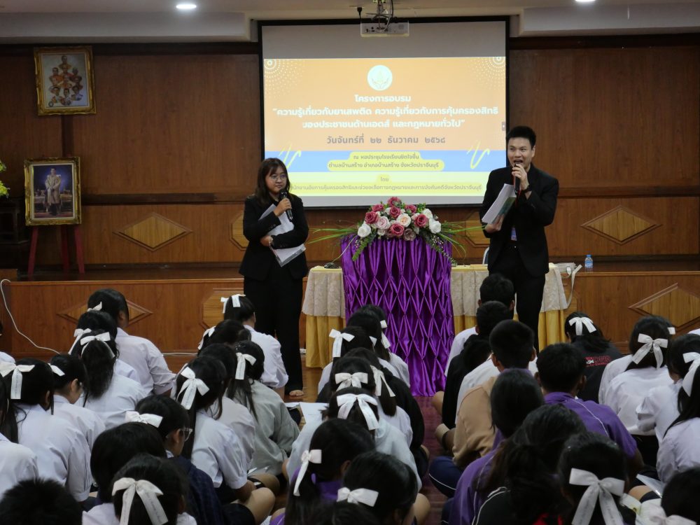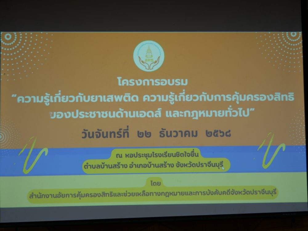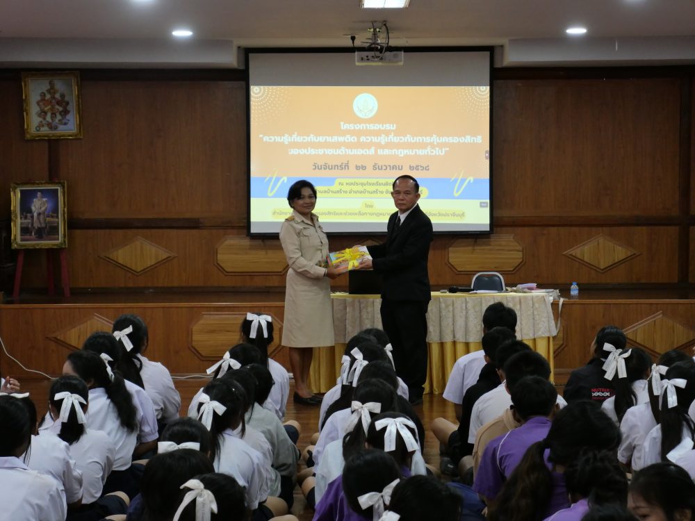ดำเนินการจัดโครงการอบรมหลักสูตร “ความรู้เกี่ยวกับยาเสพติด ความรู้เกี่ยวกับการคุ้มครองสิทธิของประชาชนด้านเอดส์ กฎหมายทั่วไป”