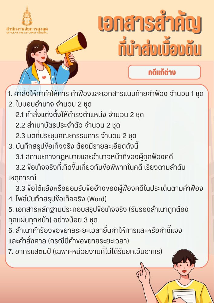 - หนังสือขอความอนุเคราะห์ให้พนักงานอัยการว่าต่างคดี (ขอให้ฟ้องร้องใครบ้าง ให้ระบุมาในหนังสือให้ชัดเจน)
