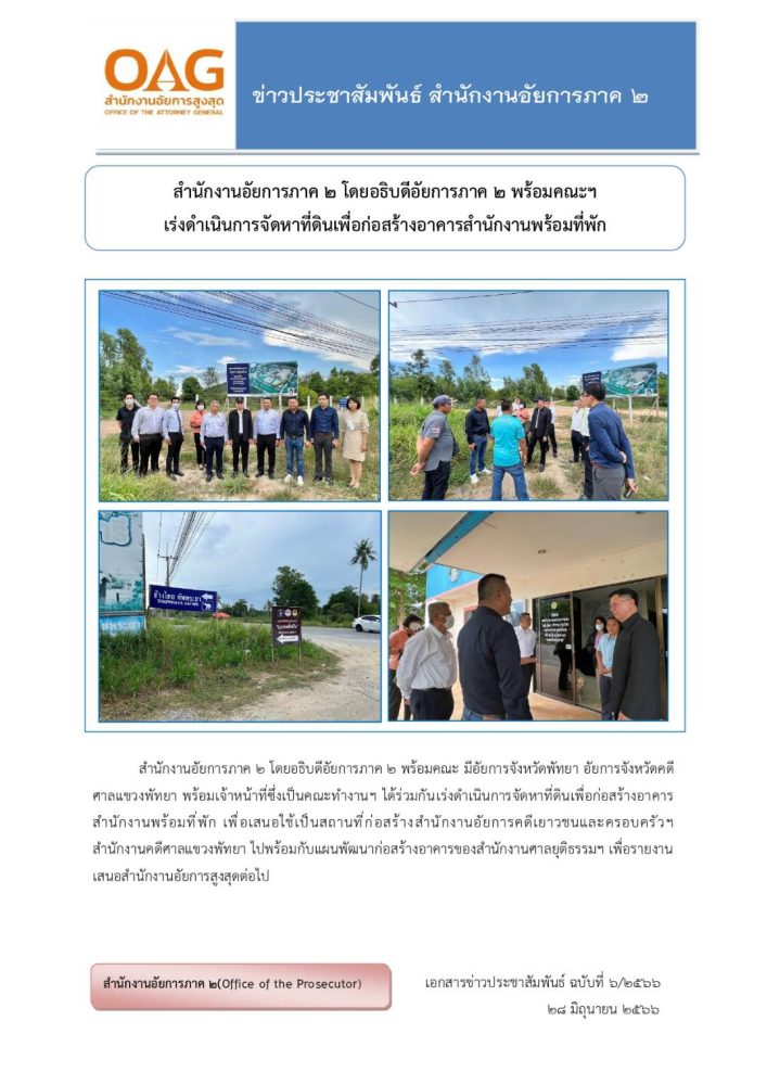 จังหวัดชลบุรี เนื้อที่ ๒๔ ไร่ ๑ งาน ๗๓ ตารางวา จัดสร้างอาคารสำนักงานอัยการภาค ๒ เป็นอาคารสูง